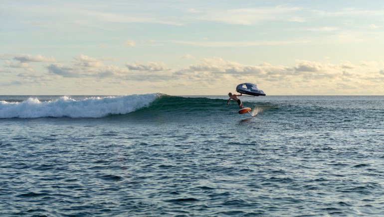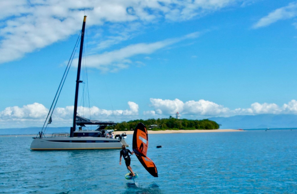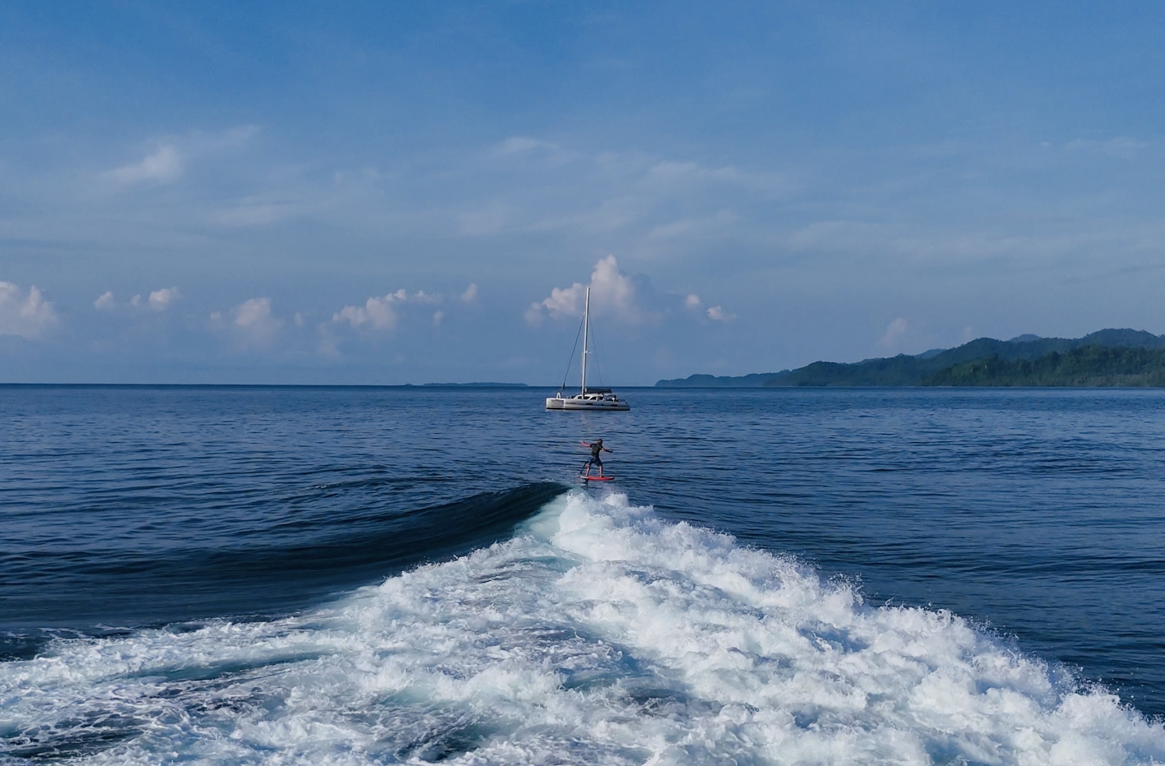 The dinghy is useful to tow foil boards, but it’s not a ski. If you get caught inside you’re on your own.