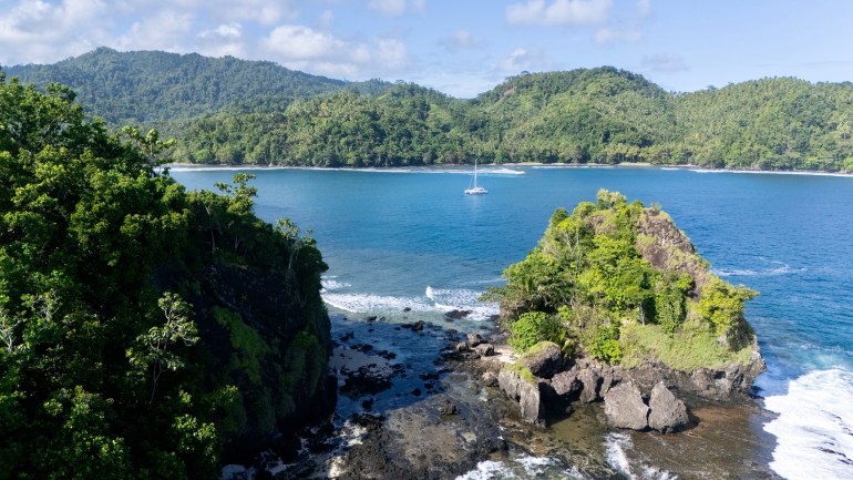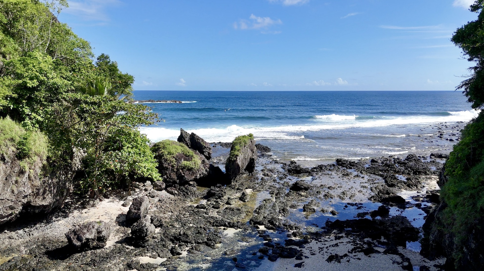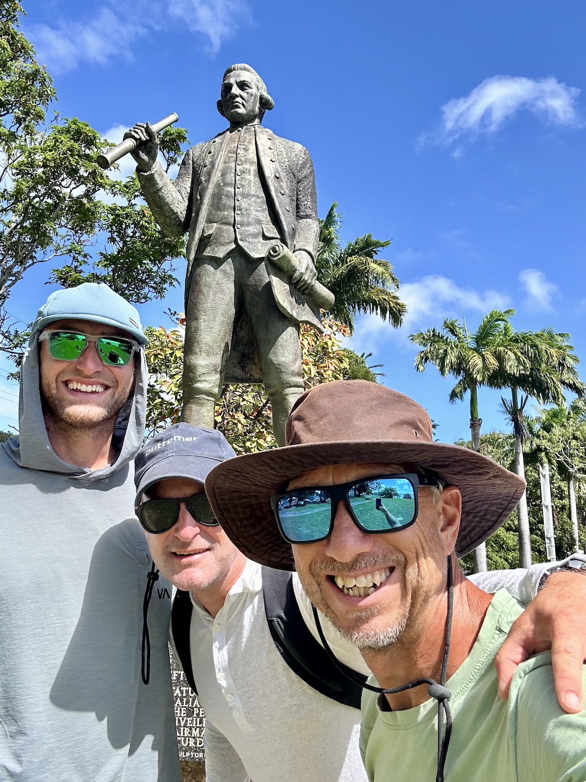 One morning I was wondering if we had travelled through time as well. I was on deck at first light, pink mist above the reefs. The overture to another day in our splendid isolation. I scan the vast scene, from lined up waves to the cliffs and wild forested hills and valleys beyond. No sign of human life, no trace. Not a person or a building across all the visible miles. Not another boat in our bay or on the horizon. Perhaps we had slipped back a few millennia, or just a few hundred years. I doubt this bay looked much different when Captain James Cook sailed through here in the 1700’s.