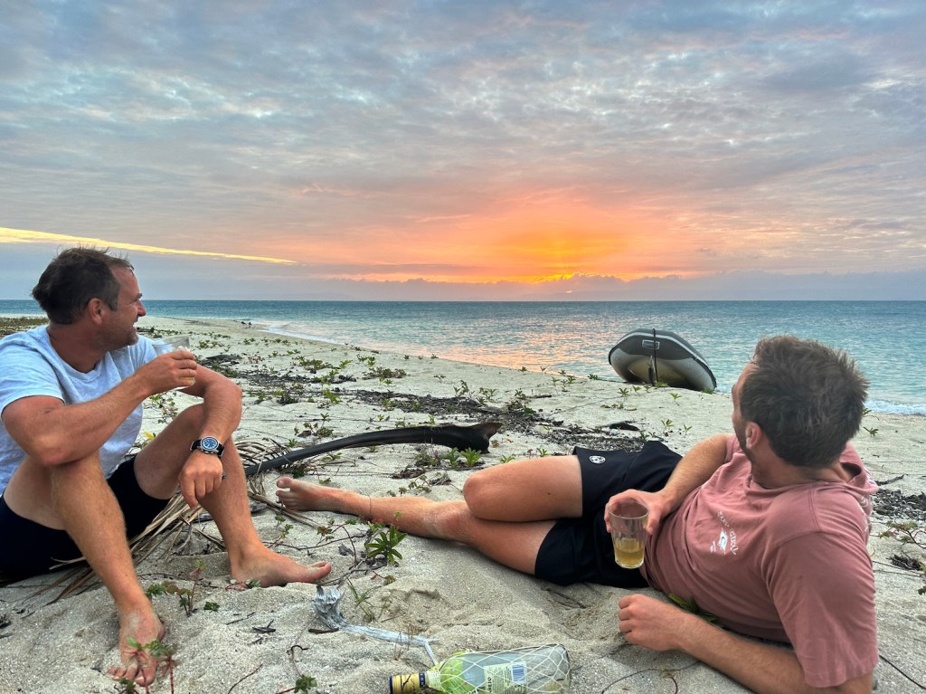 Fishing update: Bryan arrived on this trip with a whole new armoury of trolling lures. Huge glittery things with multiple hooks and googly eyes. They dive deep and slow the boat down. We had been dragging them around for about 200 miles when we finally had a bite and Bryan triumphantly produced a ‘two dinners’ Spanish Mackerel.