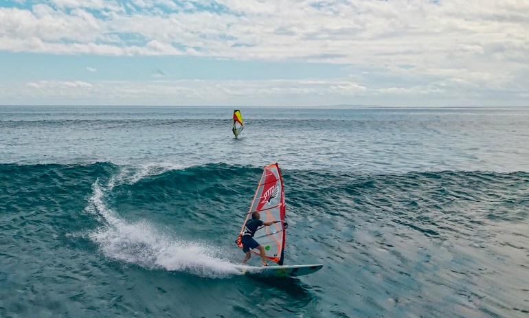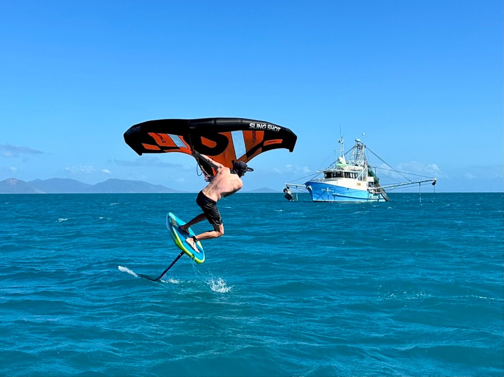 Jack is a camera-man and film maker, shooting from the water, from the boat, and from his drone. Trent is a talented wing foiler, prone foiler, downwind racer and Slingshot team rider. Oh and they both surf whenever off duty, so they were getting lots of exercise.