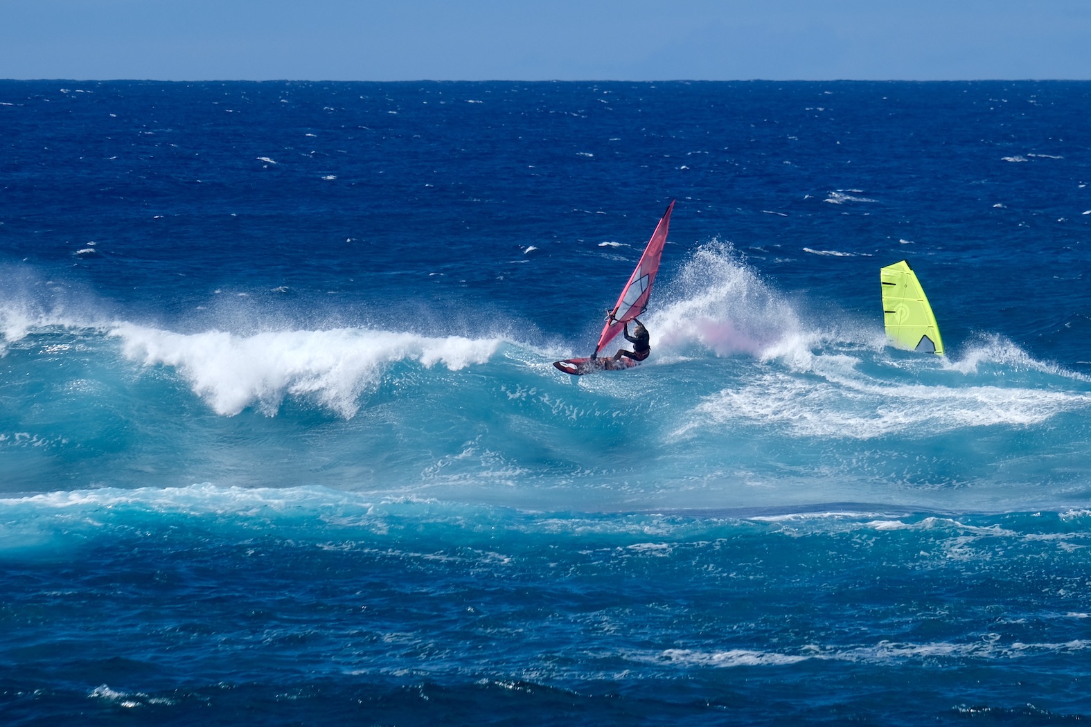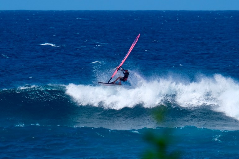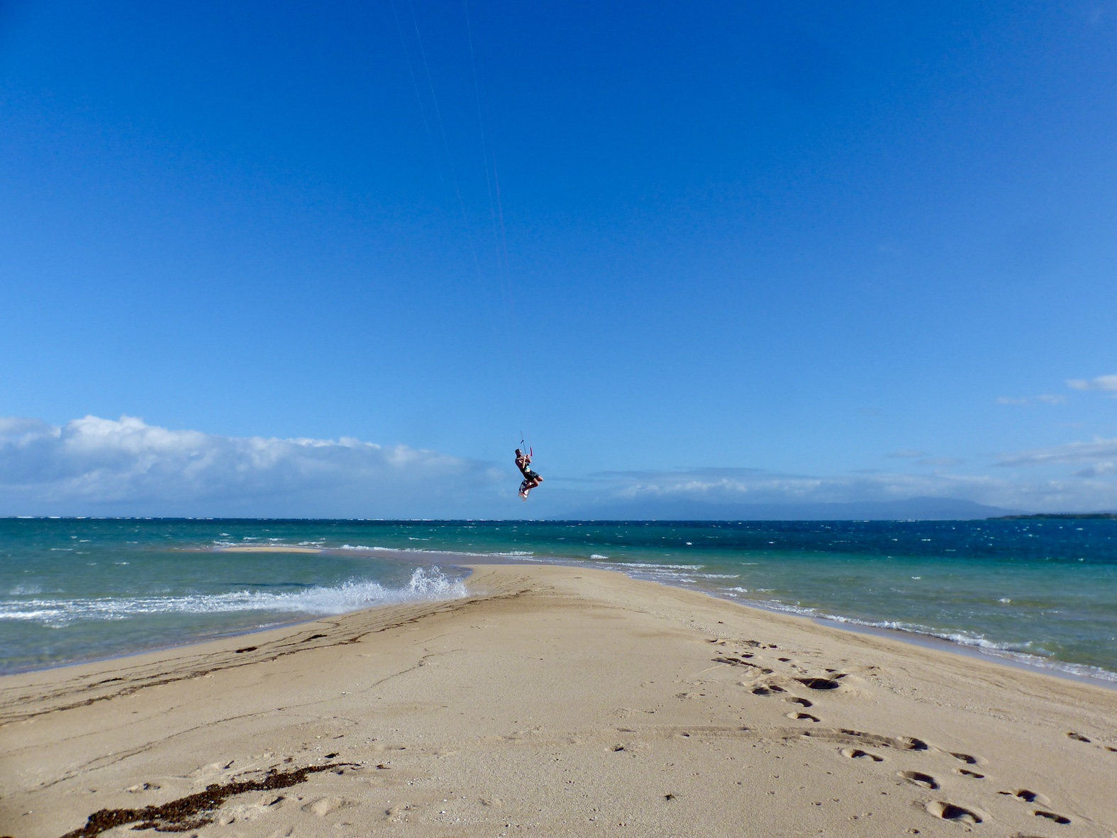 Re-provisioned and off again down the island chain, finding obscure waves and winging locations, always with one eye on the wind forecast.