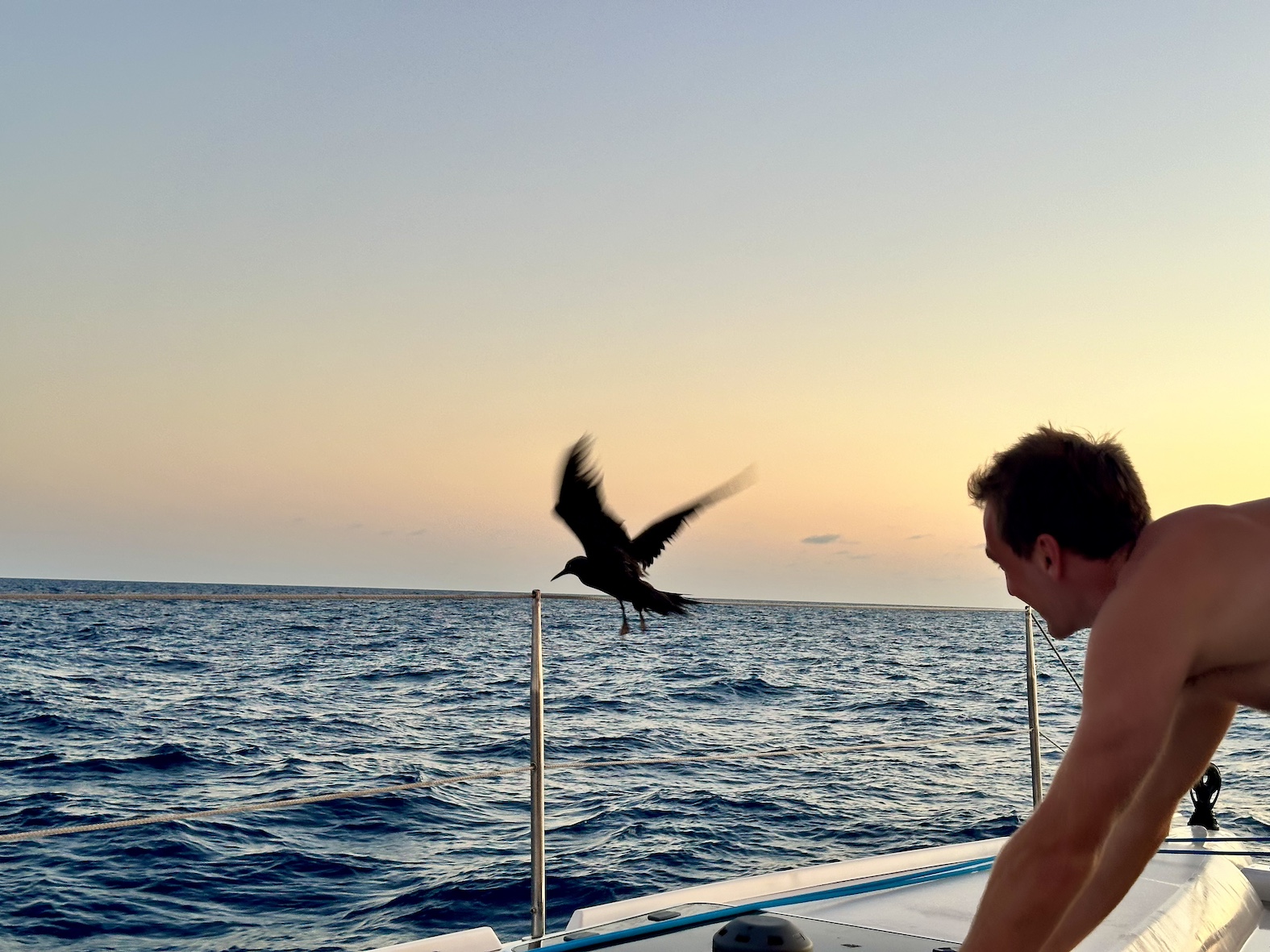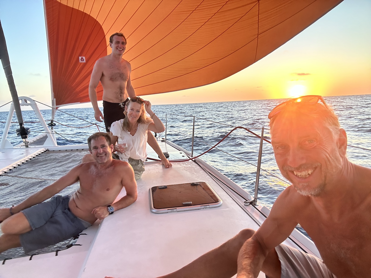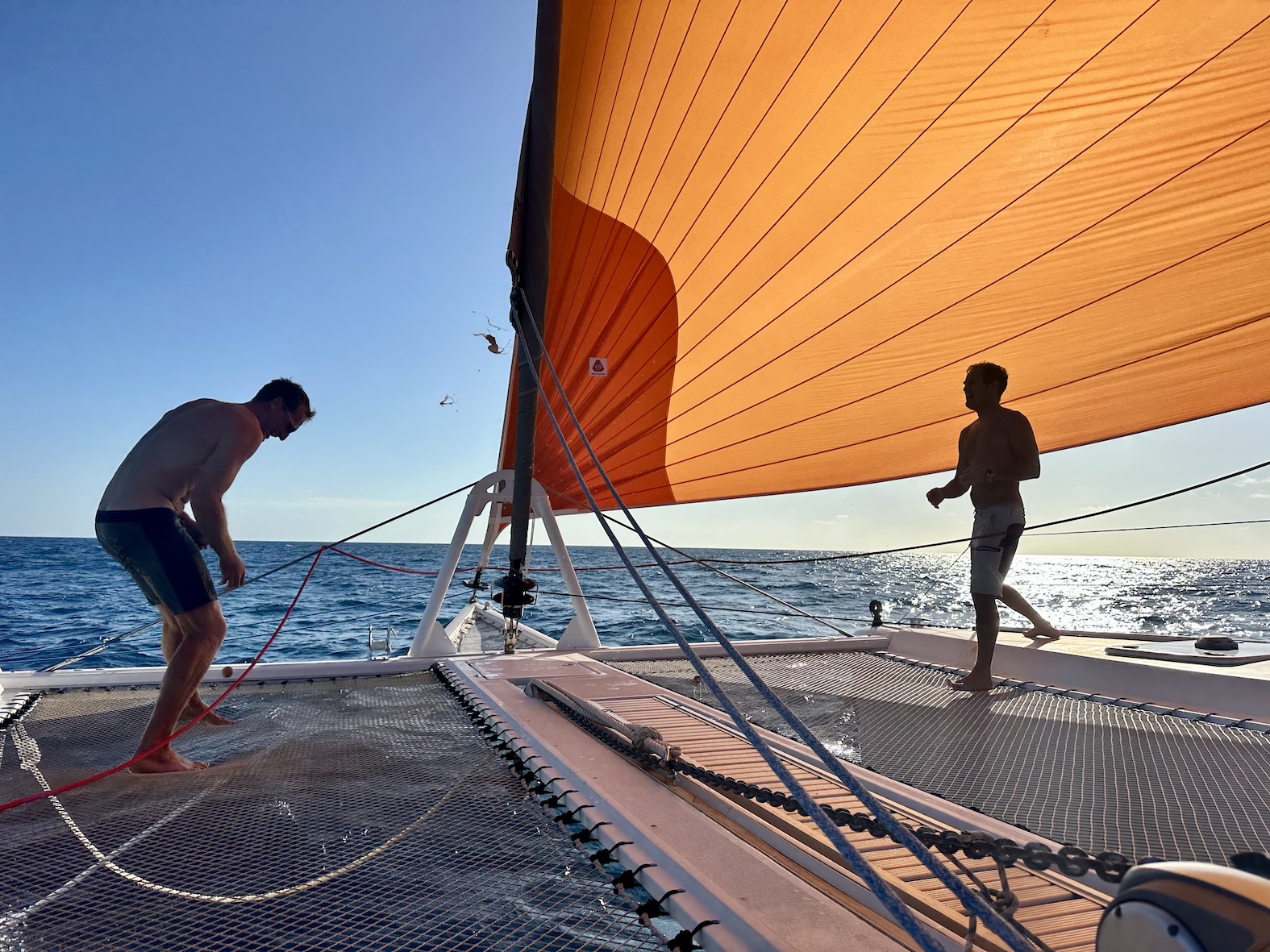 The trip to Sumbawa was too far to sail in the hours of daylight, so Trent and Jack experienced their first overnight passage. The new crew are enjoying sailing the boat. The winds were so light that in six weeks they never even had to pull down a reef, but the big red gennaker was furled and unfurled without a raised voice.