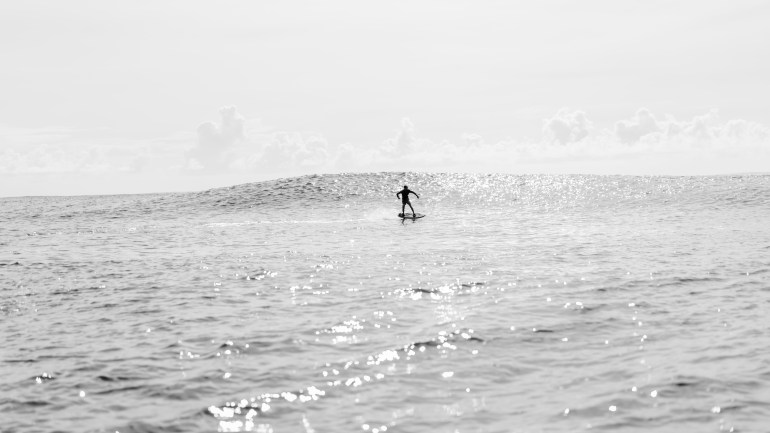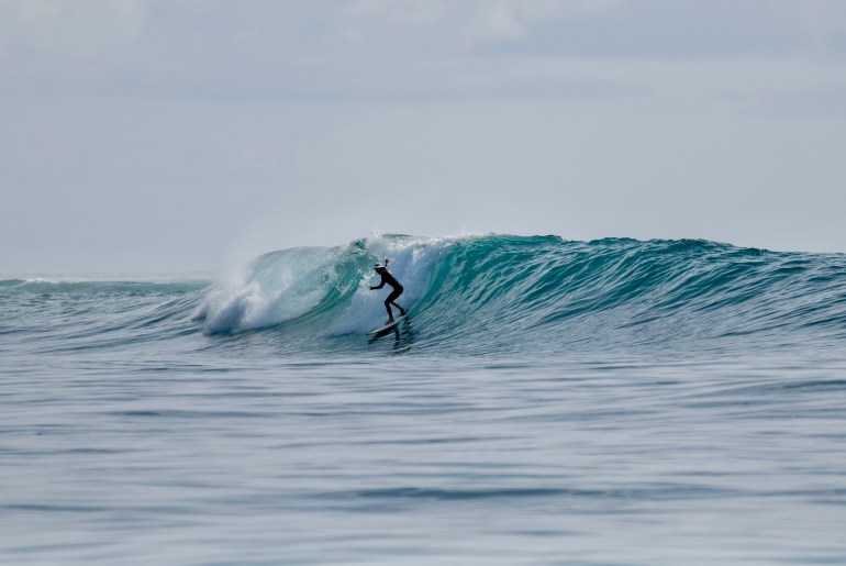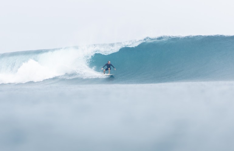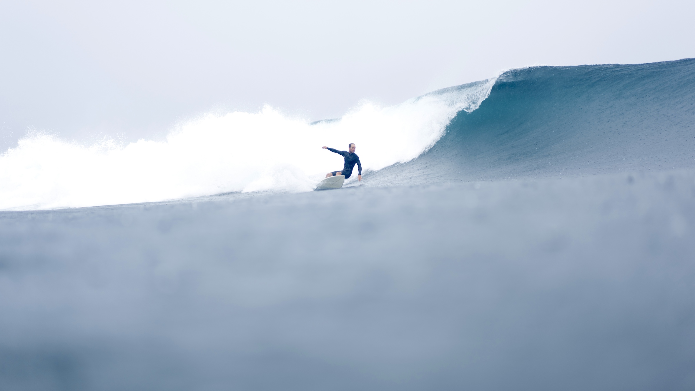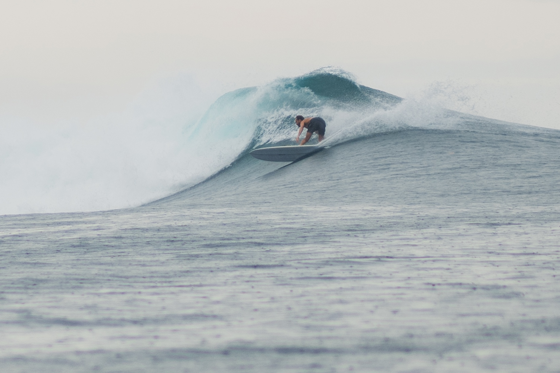 Riding down a glassy prism of seawater with the reef flashing by under the board. Dazzling. Kick out before the end section which gets very fast, and shallow. A turtle breaks the surface to breathe next to me. My shoulders are sore from days of paddling, but maybe just one more wave before breakfast.