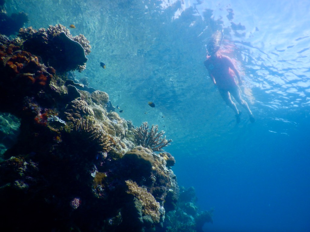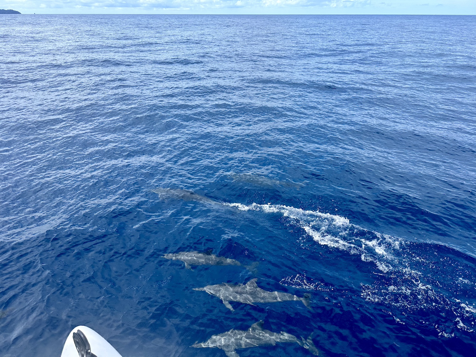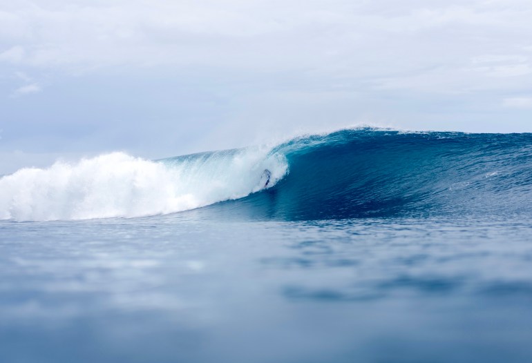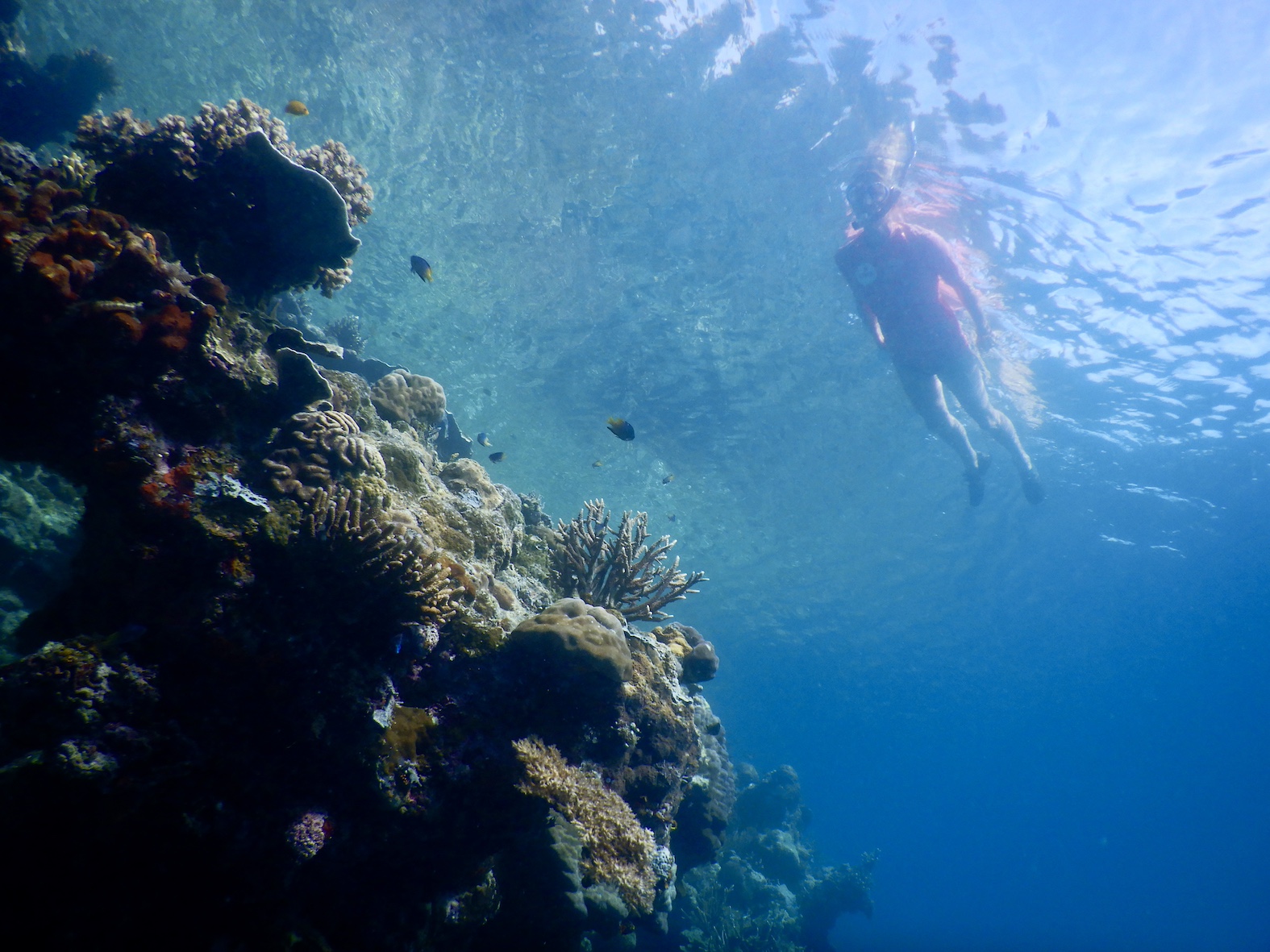 Riding down a glassy prism of seawater with the reef flashing by under the board. Dazzling. Kick out before the end section which gets very fast, and shallow. A turtle breaks the surface to breathe next to me. My shoulders are sore from days of paddling, but maybe just one more wave before breakfast.