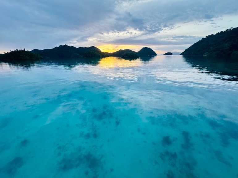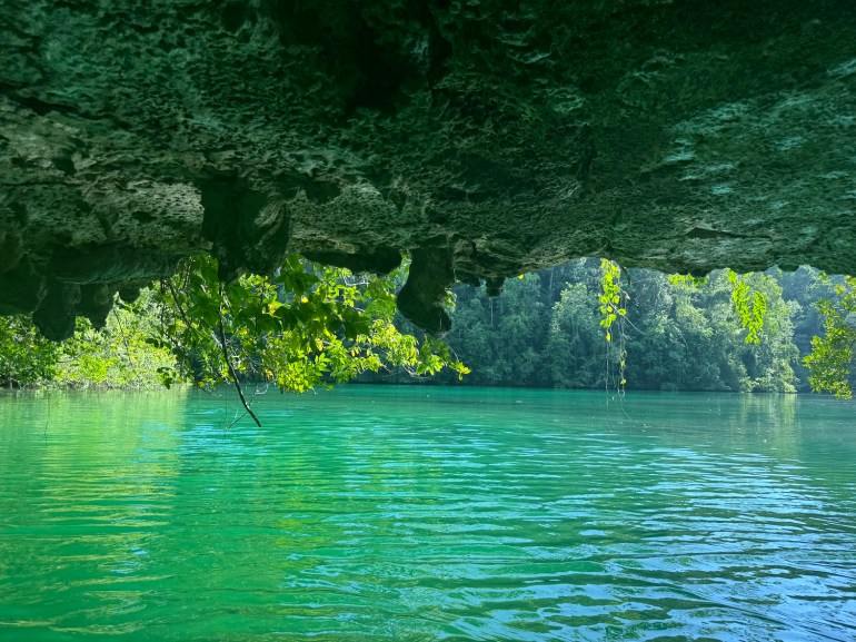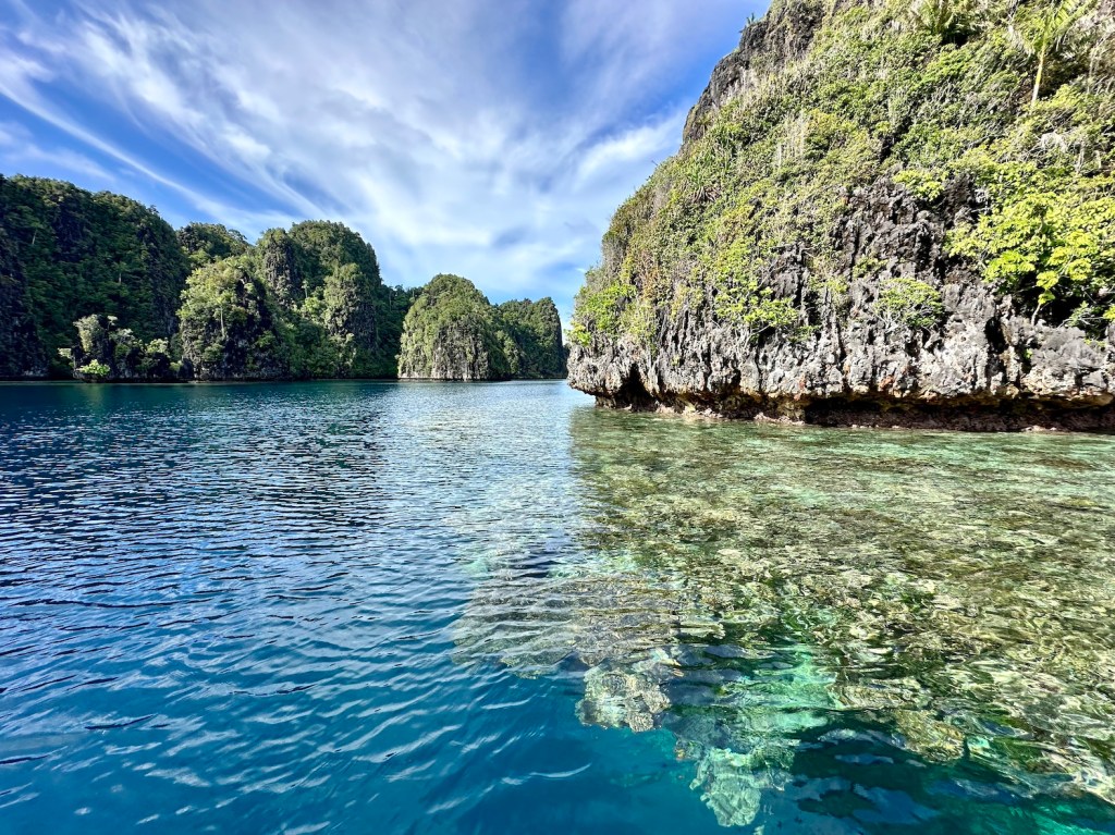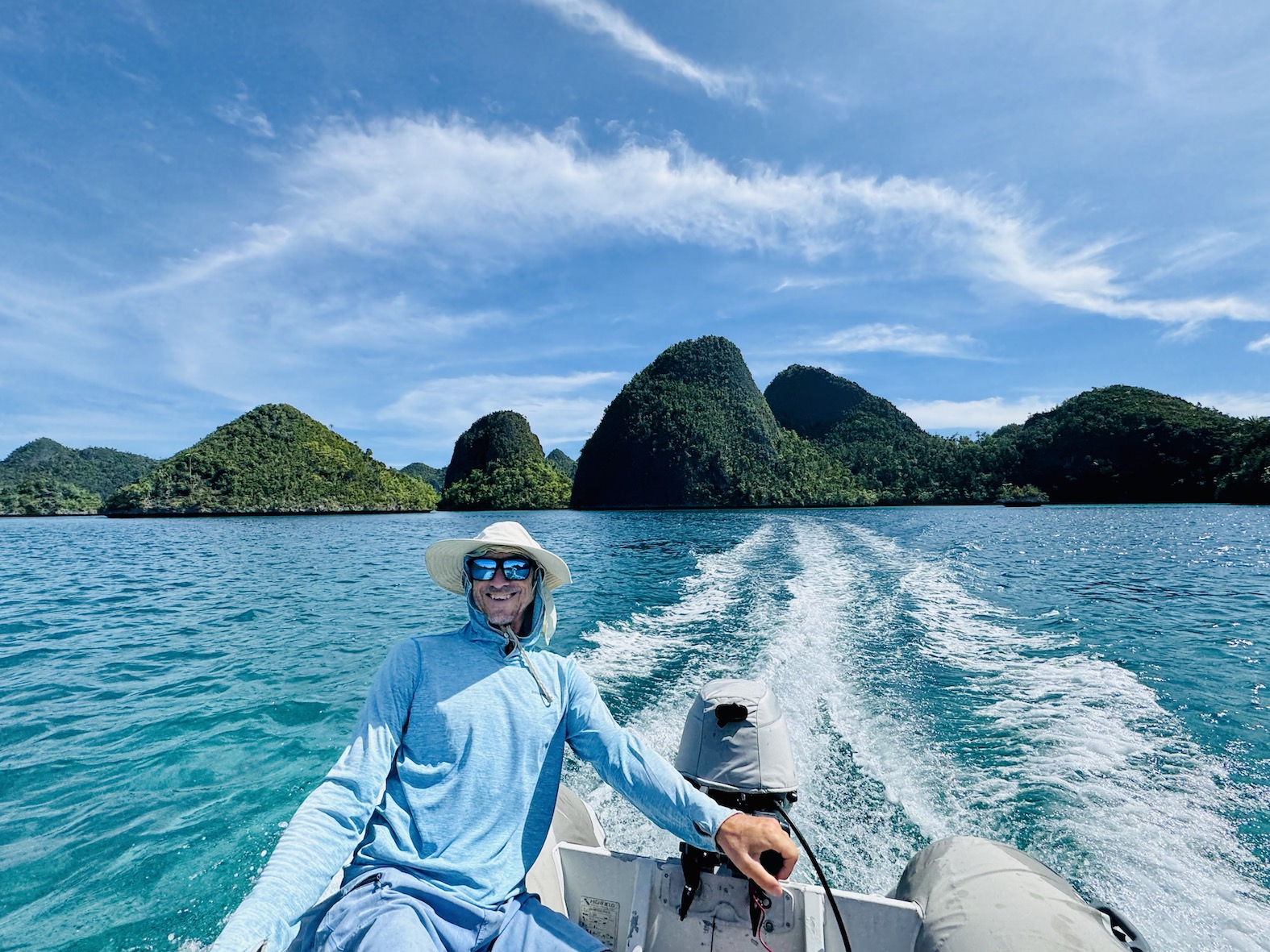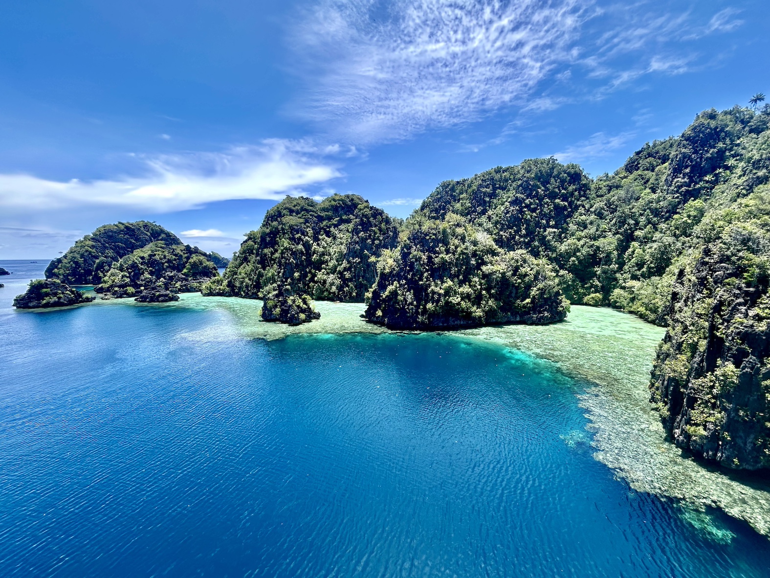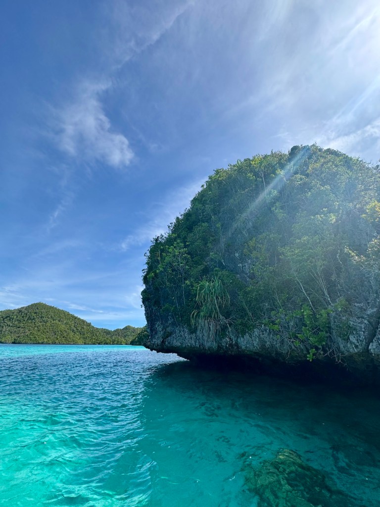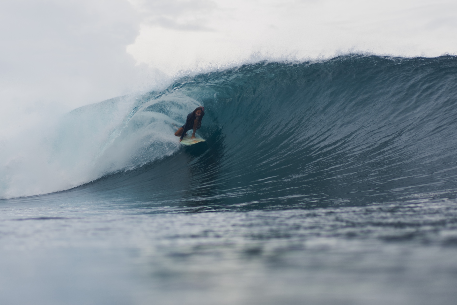 Arriving soon after sunrise we drop the anchor and take it all in. Elaborate limestone rock formations, clear water, the most eye popping shade of blue I can remember, and waves wrapping around the island into rideable lefts and rights.