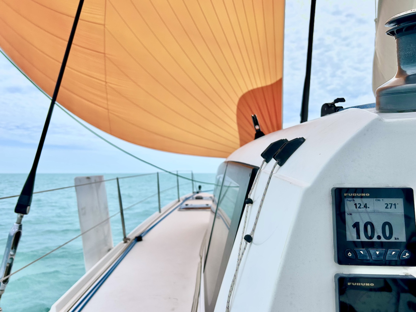 So it was a very full and wave-rich trip. But also a very challenging one, technically. Escapade demanded far more attention than usual. Two diesel engines and the outboard, faults to be diagnosed and corrected, problems to be solved, spare parts to be procured in the most remote locations. Bryan is a wizard, he will not be defeated by a problematic combustion engine. Or even a complex network of electronic marine instruments. We had an intermittent fault which flickered through the readings from the wind, heading, depth and GPS sensors. I called it a ‘ghost in the machine’. It got worse, eventually leading to loss of data to the auto-pilot, imagine that, we actually had to steer the boat!