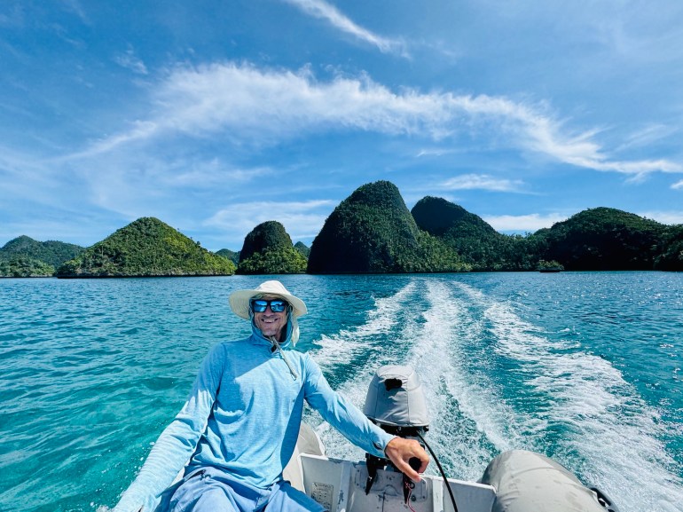 Talking of isolation. Bryan likes being on the boat. I’m often keen to swim ashore, interact with some native islanders, see some local colour, buy some fruit, try to practise some Bahasa.