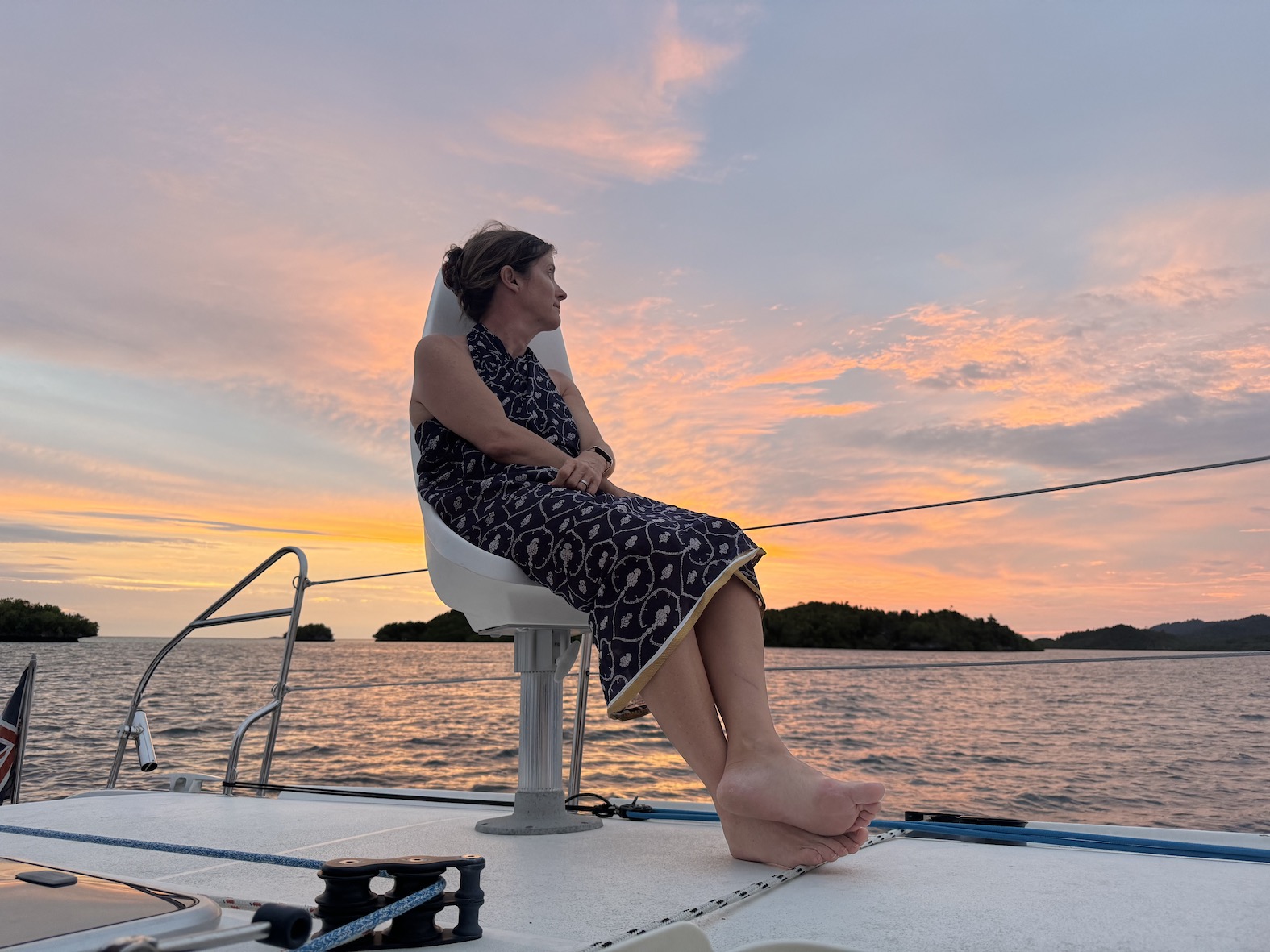One evening I decided it would be good to stretch our legs ashore, so we hiked up a hill to see the sunset.