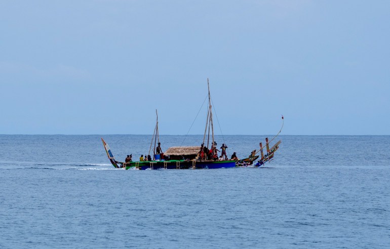 We hoisted a sail and returned to our favourite anchorage at Nembrala. Home to several of these squid fishermen in this season.