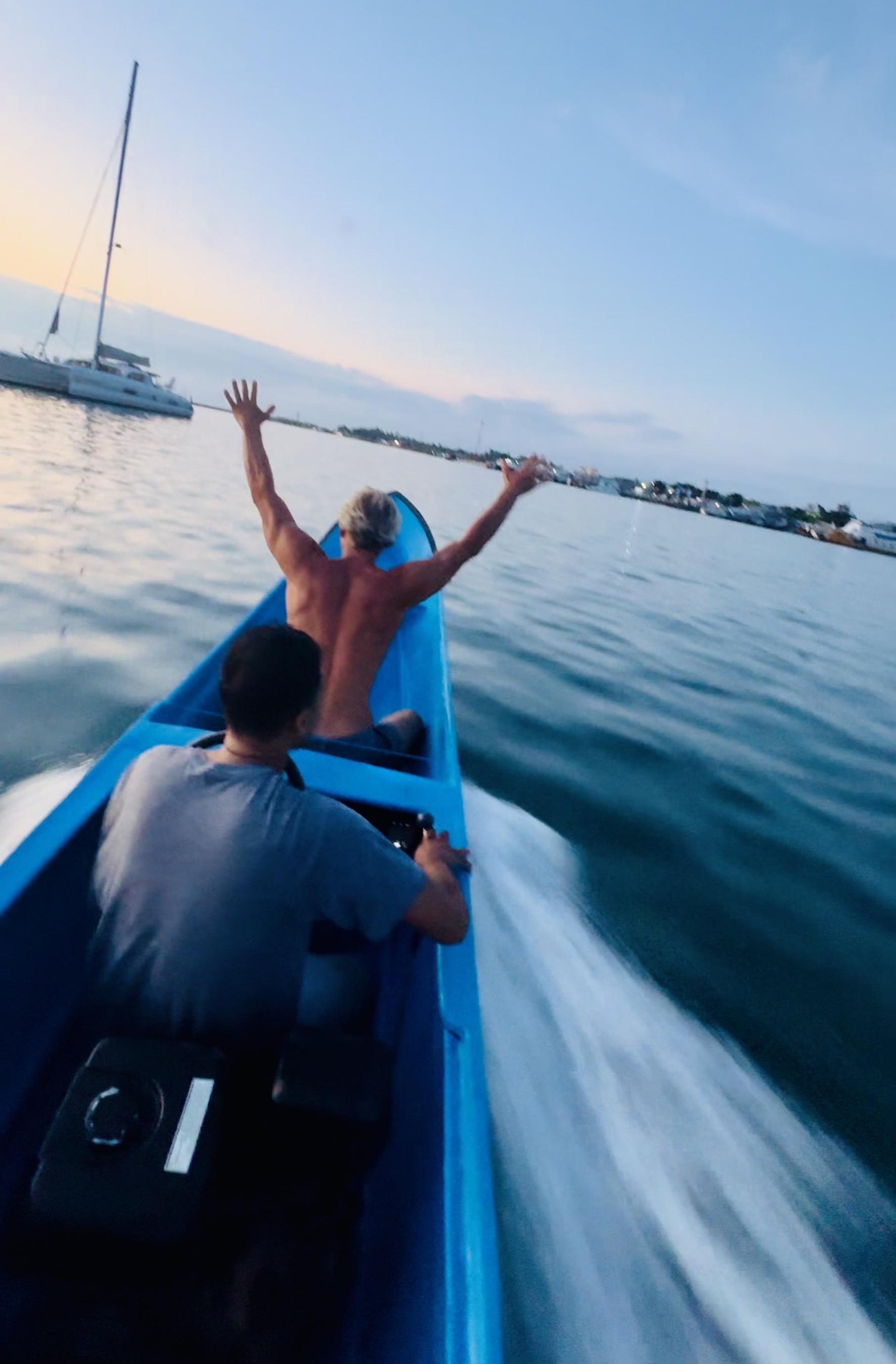 Our newish outboard motor developed a fault and suddenly refused to start. We diagnosed a failed fuel pump and needed our friend Julius to help with the logistics.