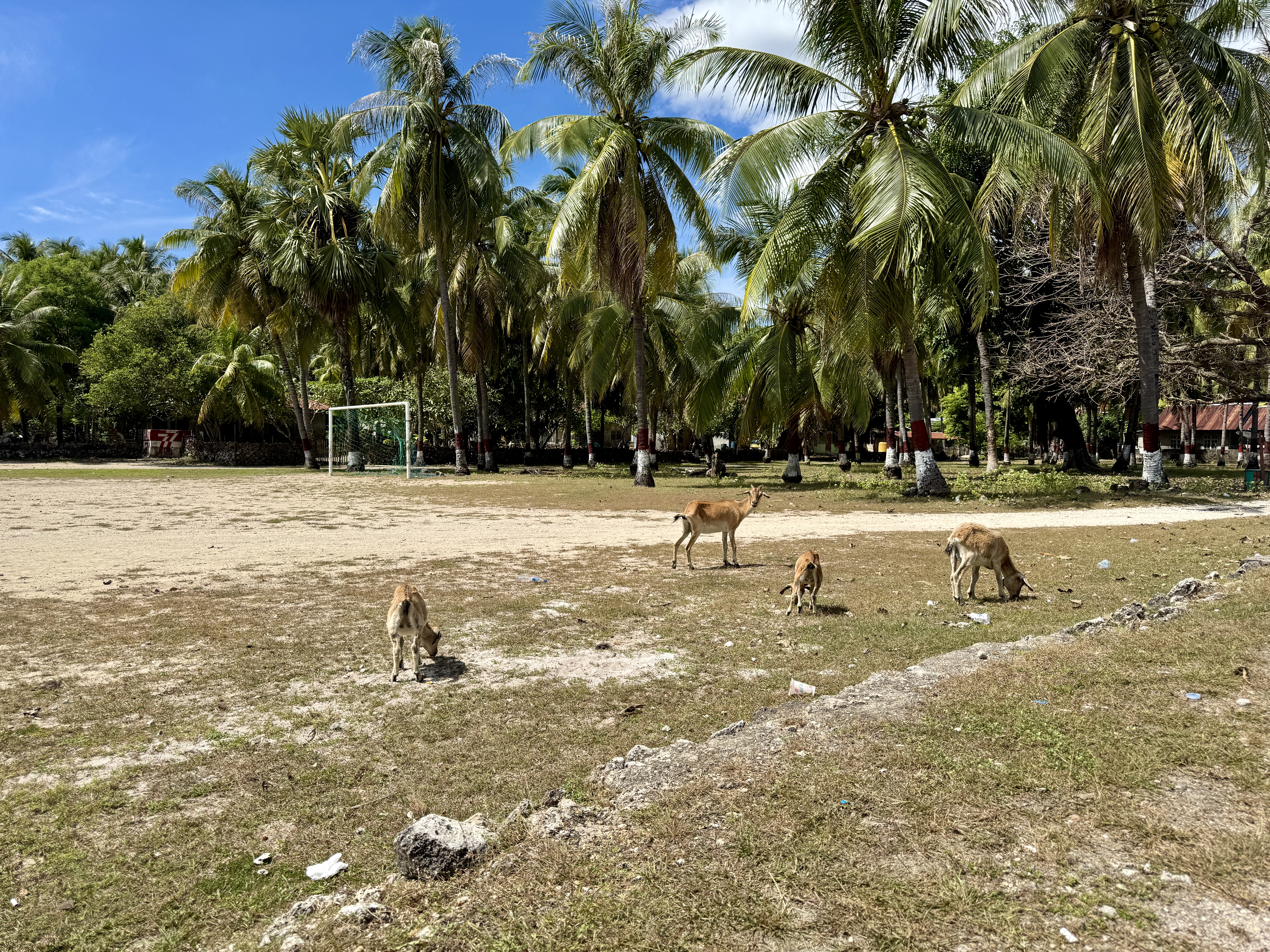 Oeseli is a great place for all that, flat water to work on, a supply of chilled coconuts to keep us all hydrated and a peaceful shady spot to relax, with those friendly goats foraging around.