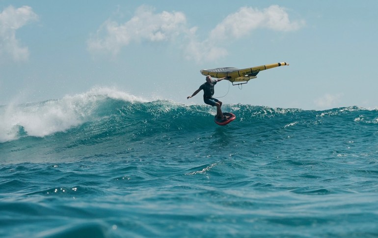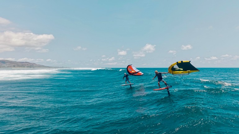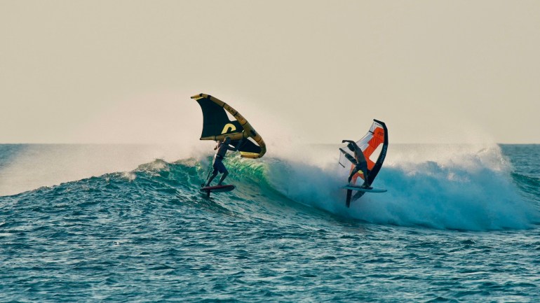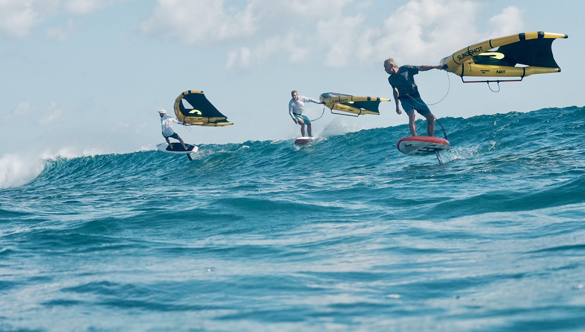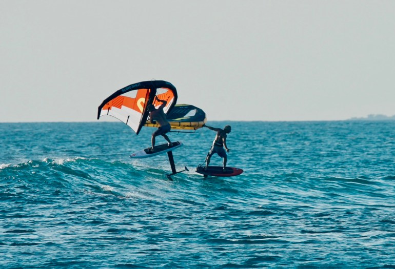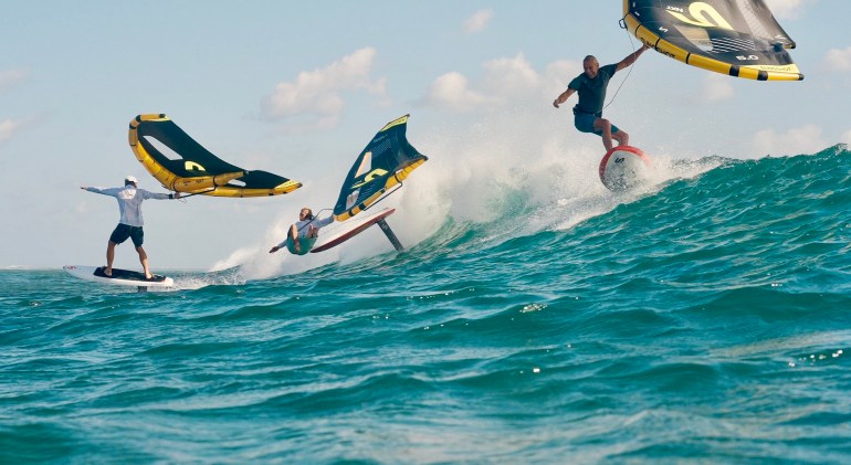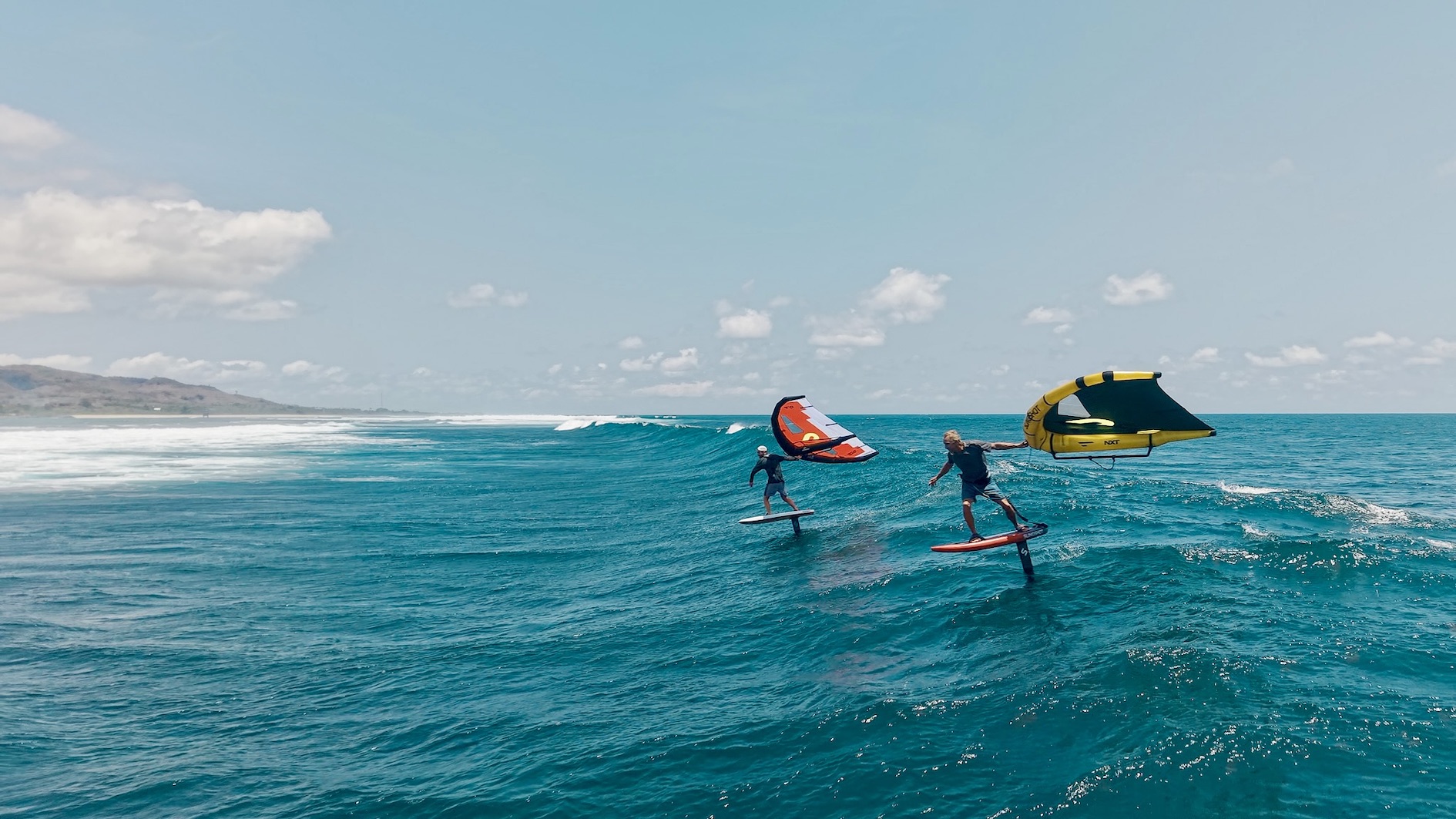 The wind and waves co-operated and the boys were able to deploy an arsenal of wings, boards, foils and start filming.