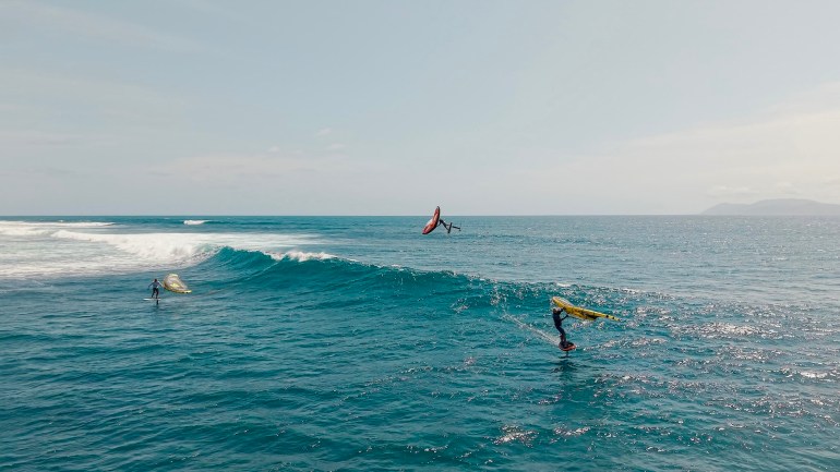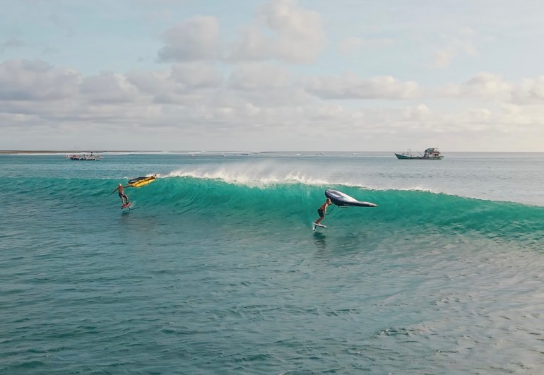More exploration, the reefscape around us set up some fun surfing, towing and light-wind winging.