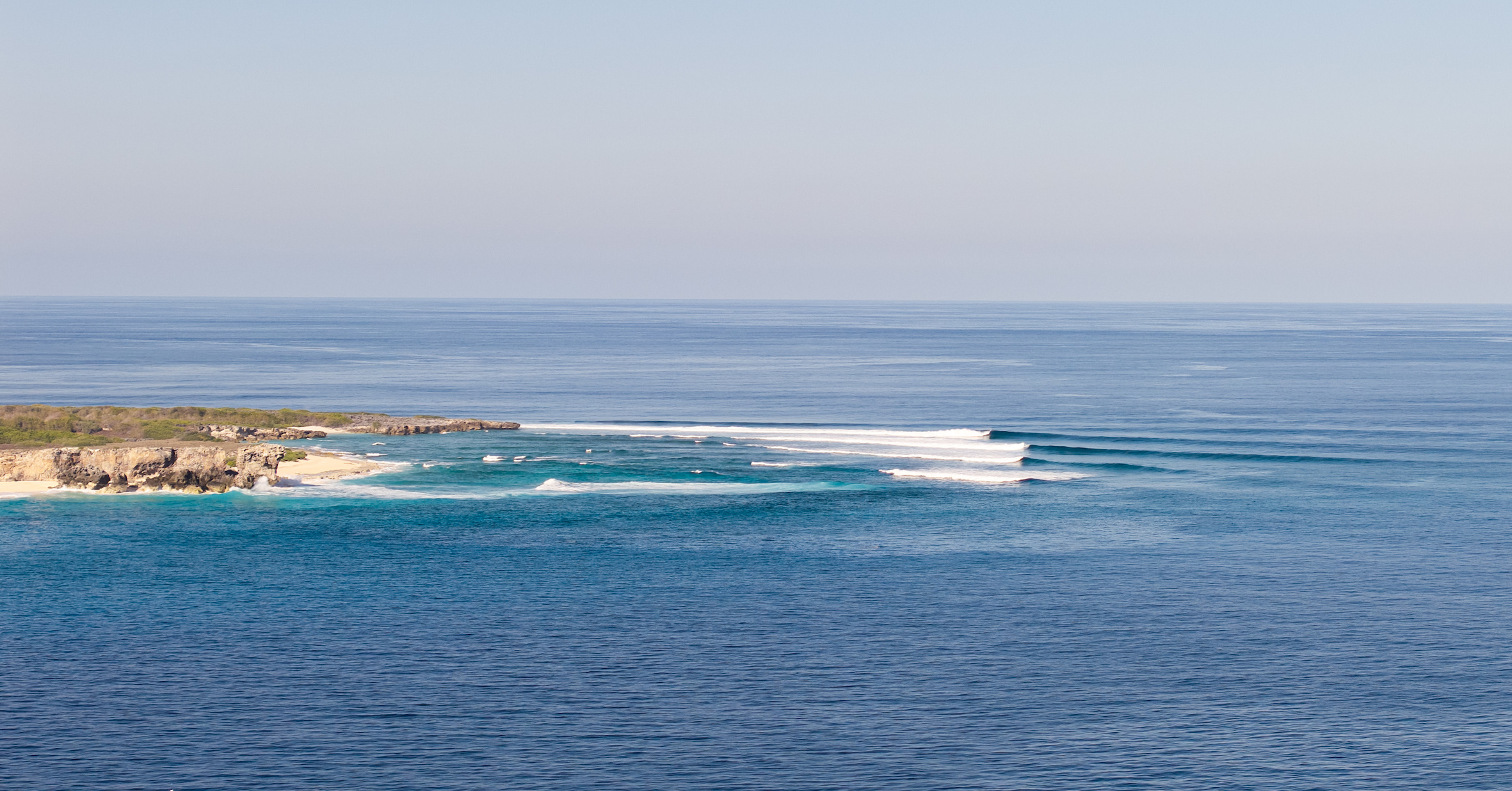 Smooth blue walls peeling perfectly towards us. Silence between the sets, spray hanging under the limestone cliffs, all lit by the low morning sun.