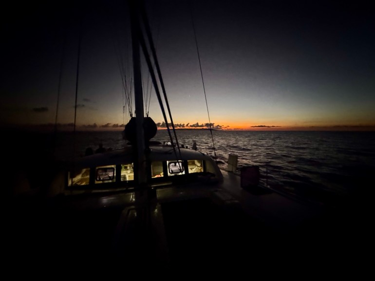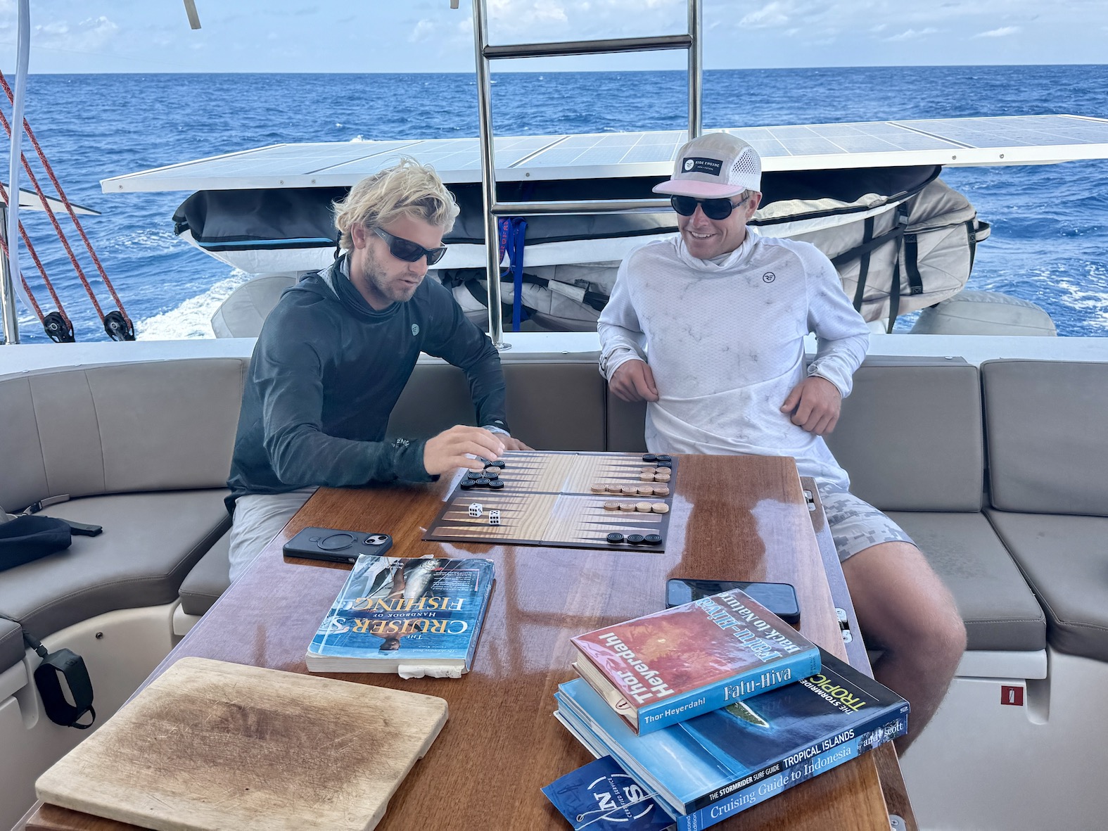Escapade’s solar array is keeping up with Jack’s drones and camera charging requirements. The water-maker is working hard to provide everyone’s hydration, plus all that water to cook the mountains of rice and pasta that Jack and Trent need every night.
