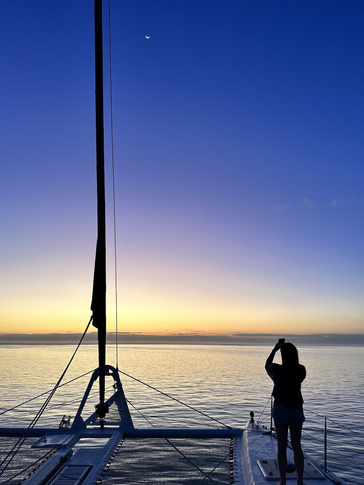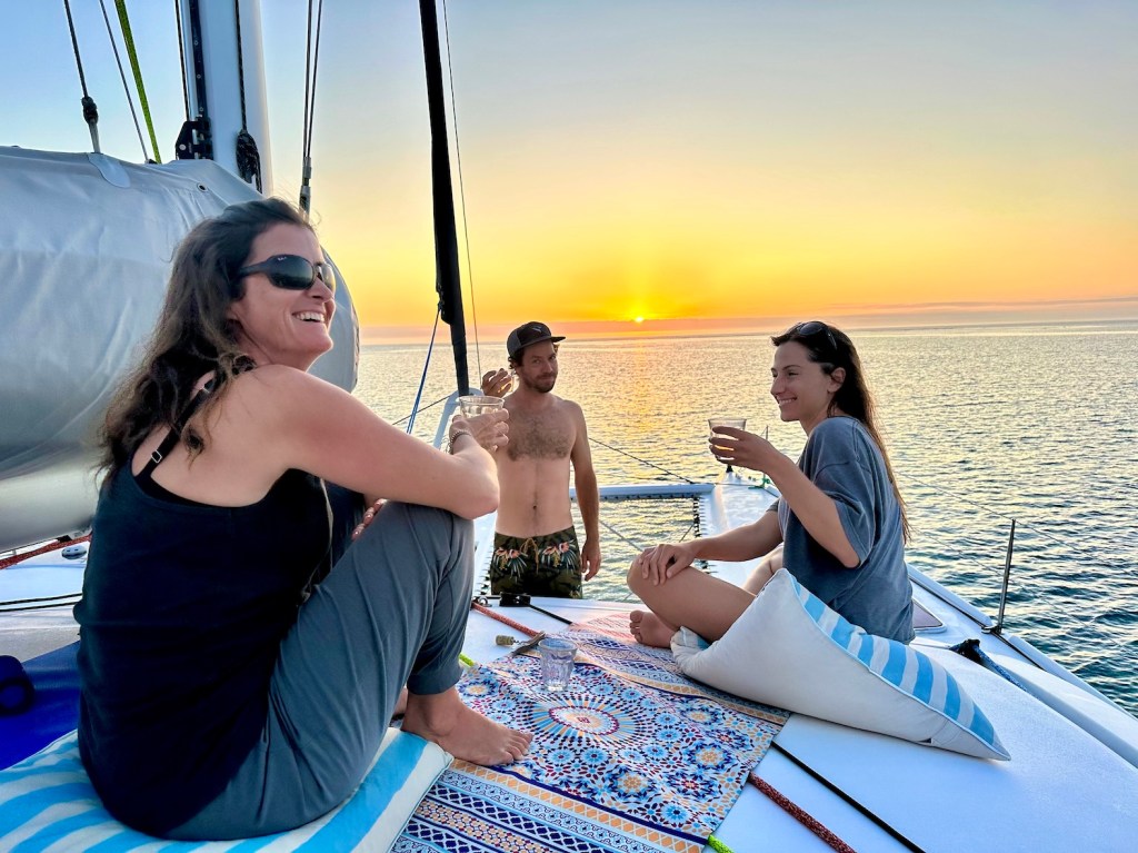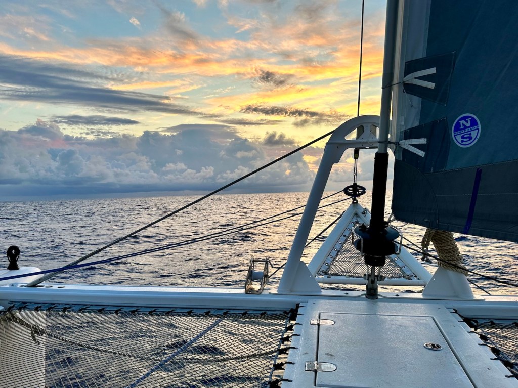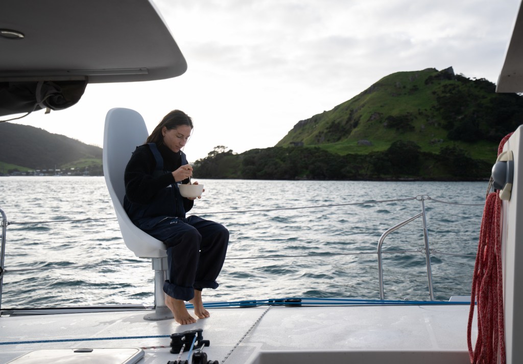 Then we’re up at first light, really living in the elements, attuned to our environment. In a house on land I feel insulated from all those things, on the boat it’s just a few mm of high-tech composites between us and the sea.