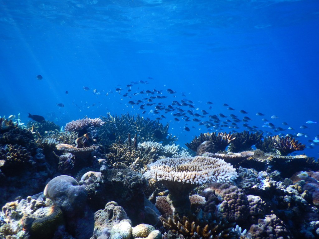 Clouds over the sun mean it’s not great light for navigating in coral, and I’m unsure where to head first, Beaver or boobies?