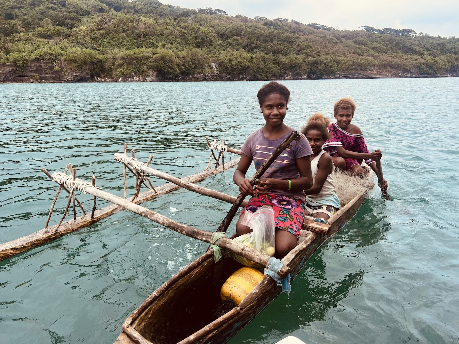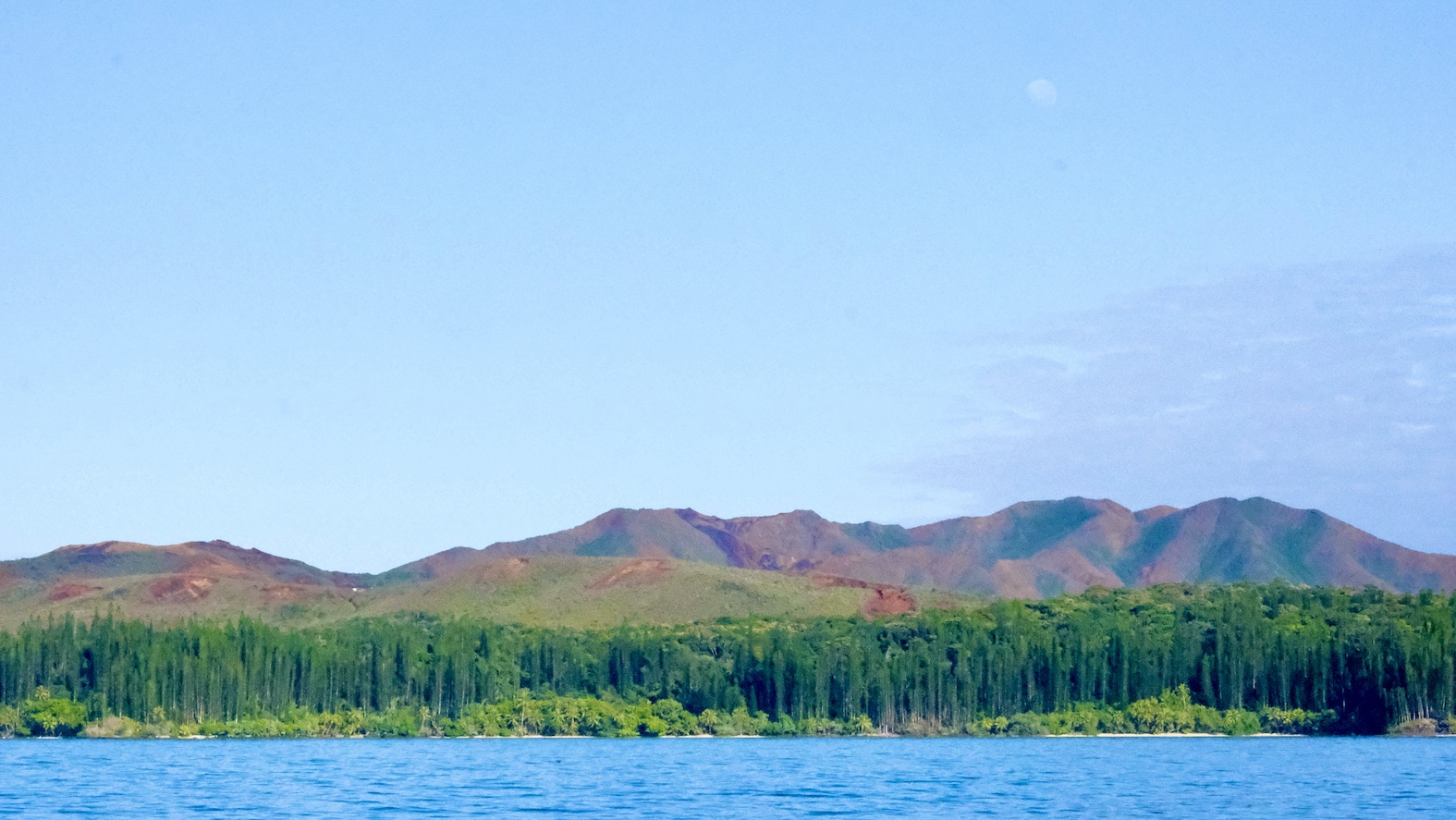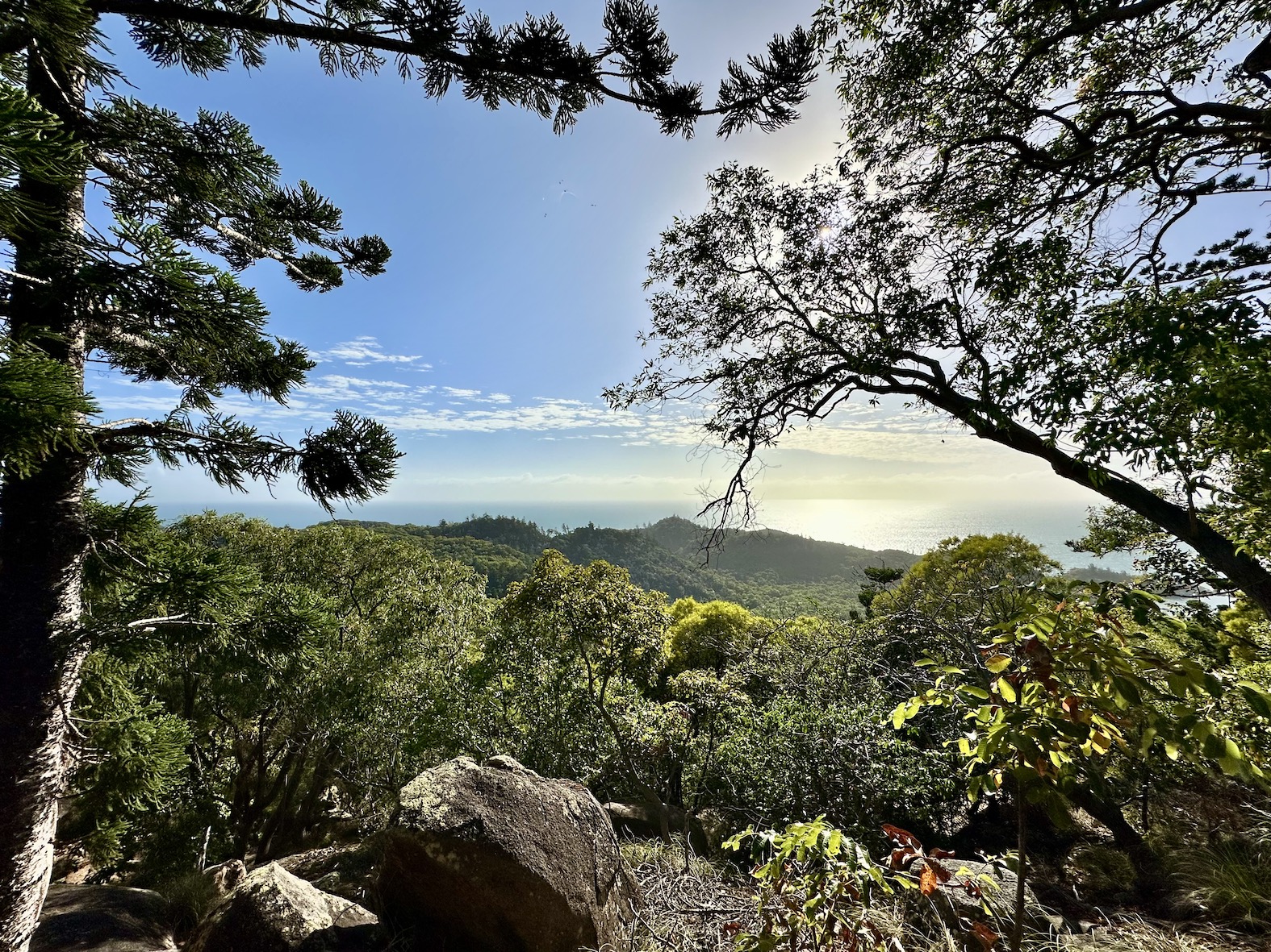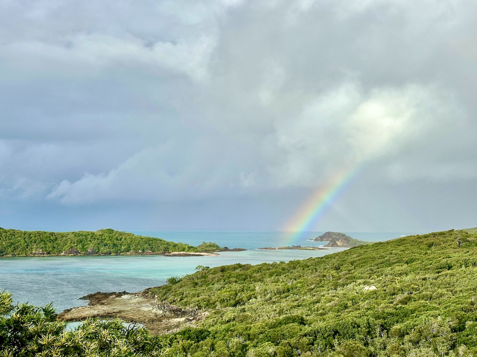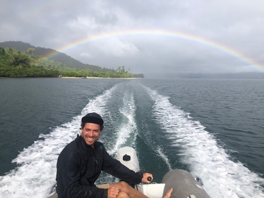 We can look down on the whole bay, Escapade at anchor far below. Not another human anywhere. Nor any sign of one, there are no roads, vehicles or buildings on this island. The bay is only accessible by boat, and there’s only one here. Just us and all the creatures that live in this timeless place. Jungle covered mountains reach almost 1000m above us.