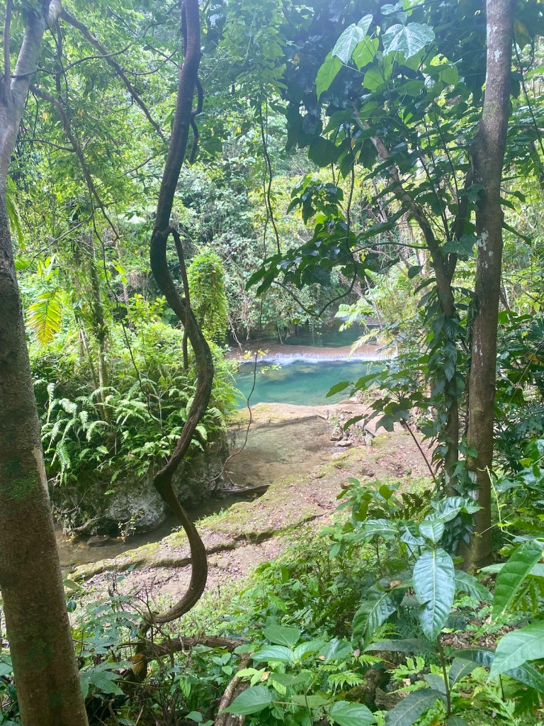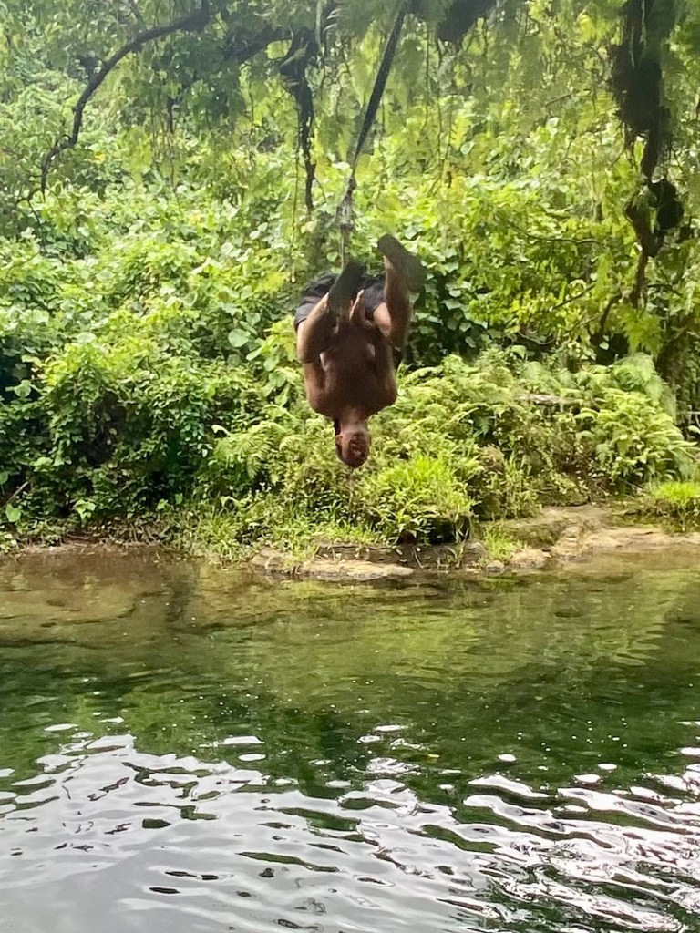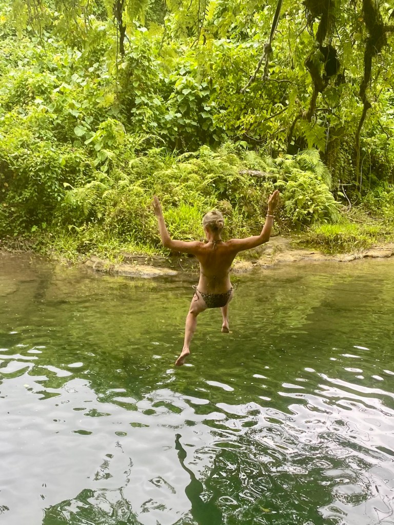 It is an enchanting place, clear water with fish swimming below, butterflies above, birds chattering and whistling in the canopy.