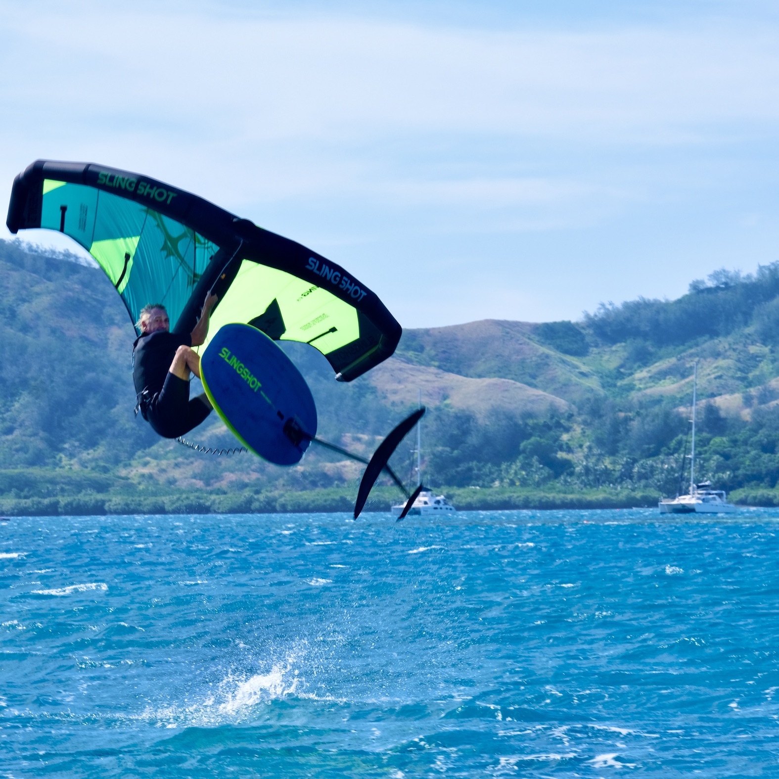 After a windy grey start at 6am we sailed in to Zoe Bay a bit overpowered, making our usual entrance at 15kts with spray flying up through the trampolines.