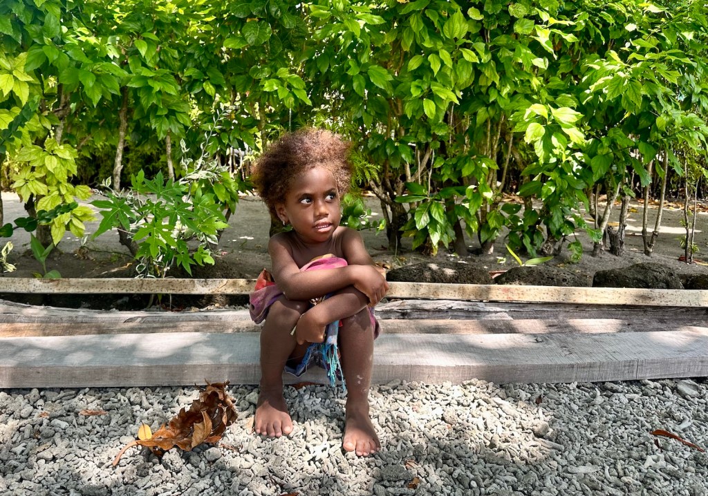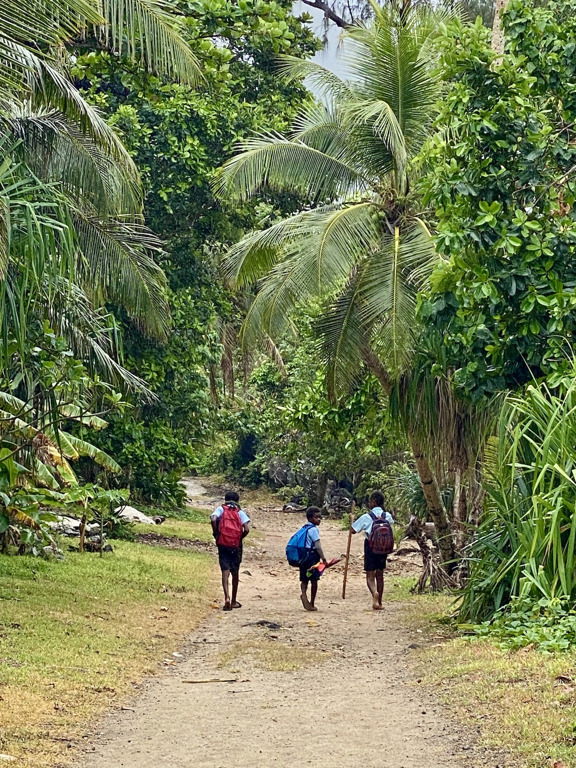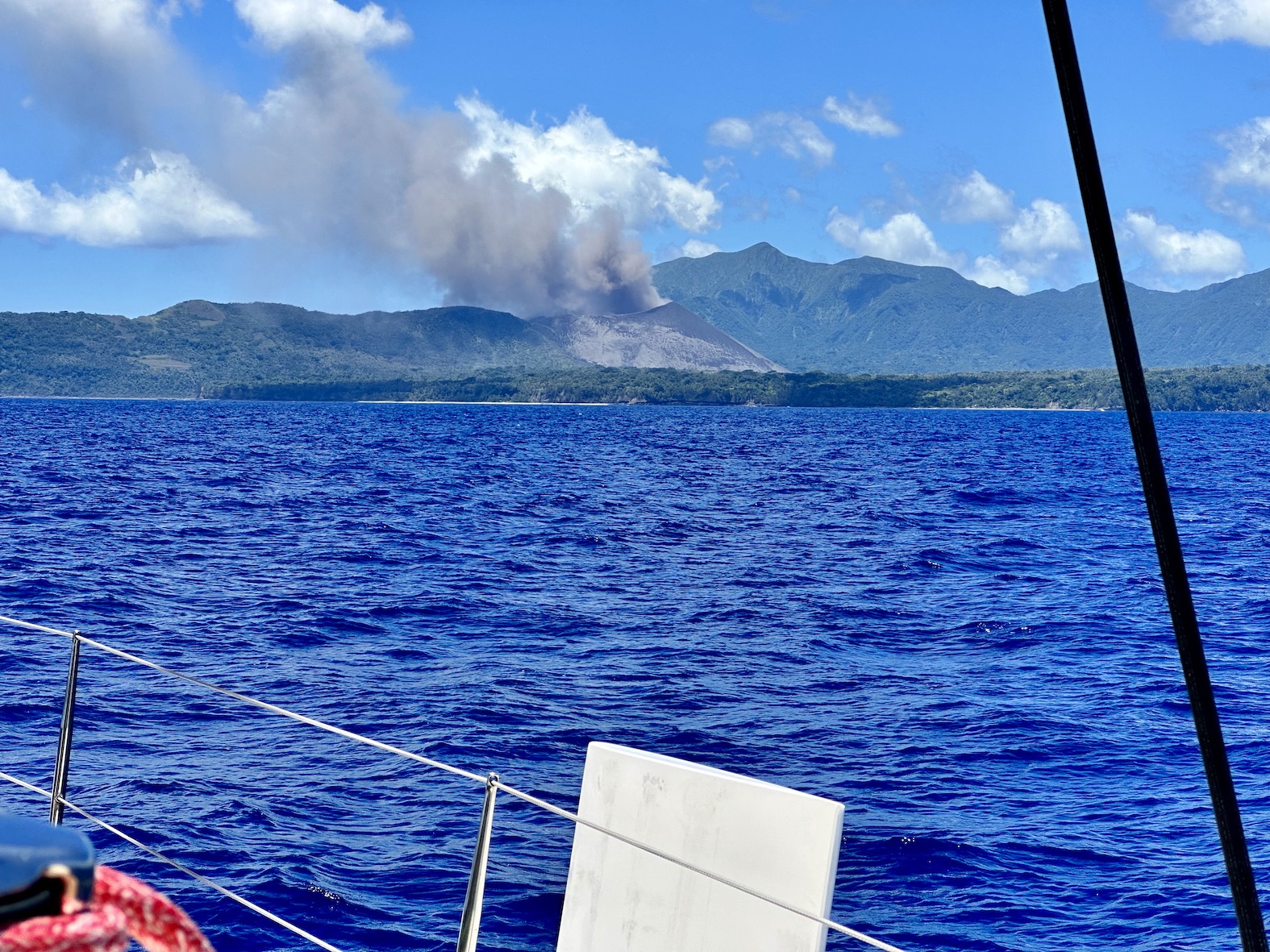 Living with the daily routine of forecasts, sailing a few miles, working the tidal streams and researching the next anchorage. With these ‘well developed tradewinds’ that have been blowing most of the time, there is a permanent north-bound wind swell of I metre or more. It’s fine while we’re sailing (downhill) but that swell tends to bend around all the headlands and islands to disturb the peace of most anchorages.