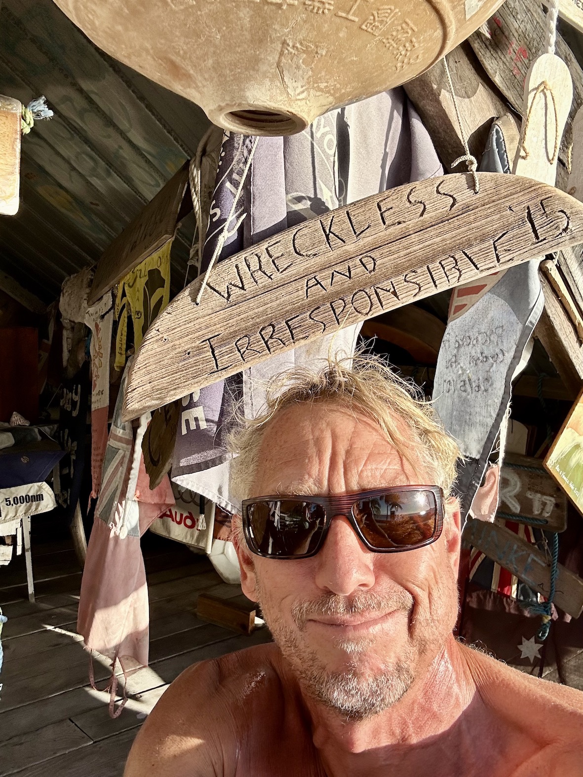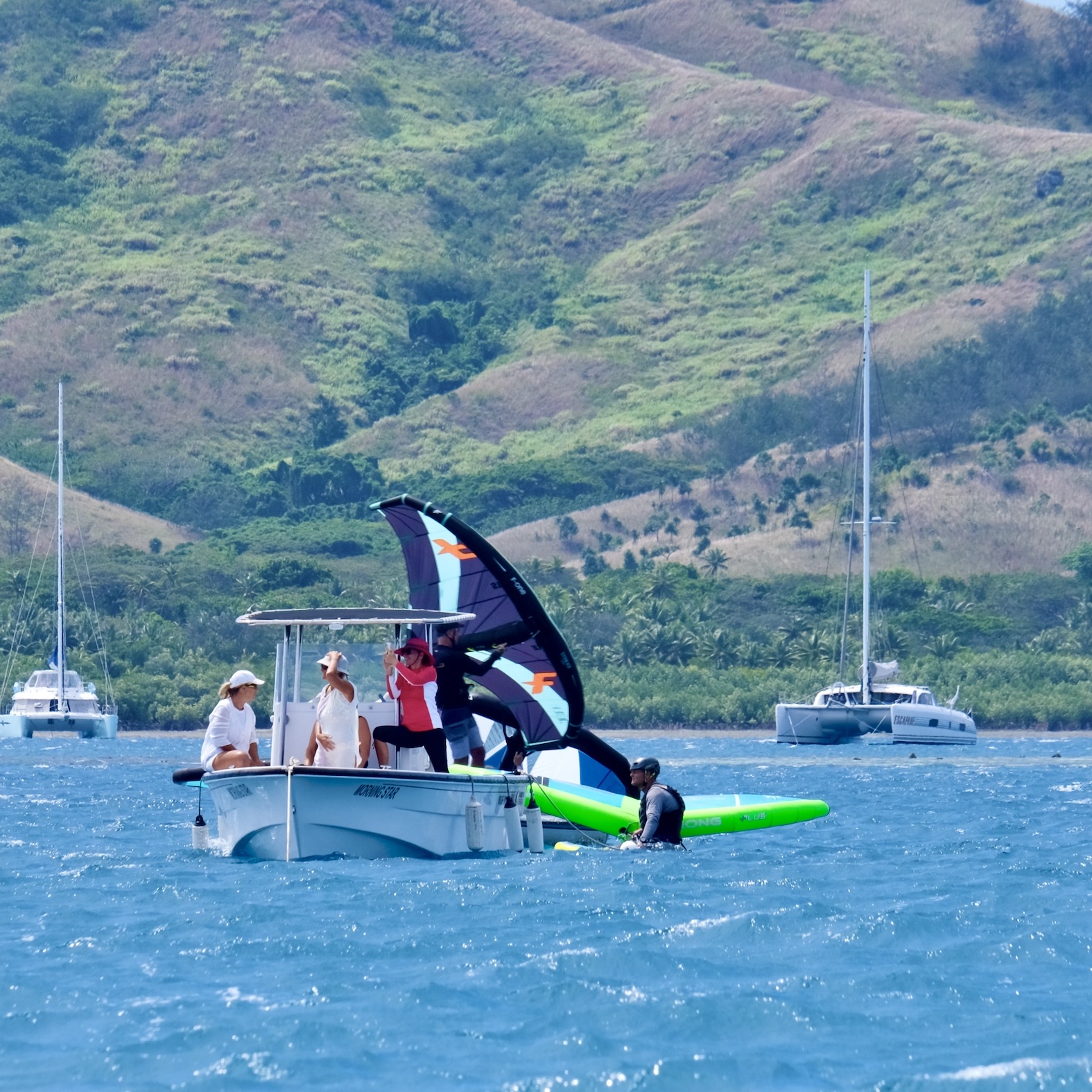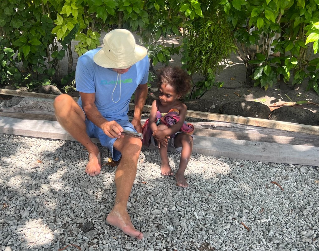 Shortly after taking this photo the damn thing flew out of contact with Mission Control and we had to get in the dinghy to try to rescue it. Seems to be on the blink, can’t think why. Anyway it’s back safe and dry. I may not have mentioned to Dawn before that Bryan crash landed it in Fiji once, after my failed attempt to catch it with a wet hand.