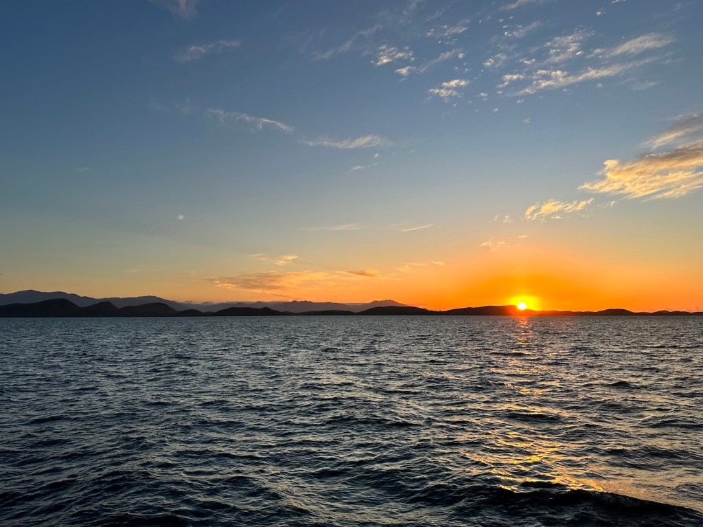The bay is huge and deserted. The mountains of Hinchinbrook Island are spectacular, reminding us of Moorea all those miles ago.