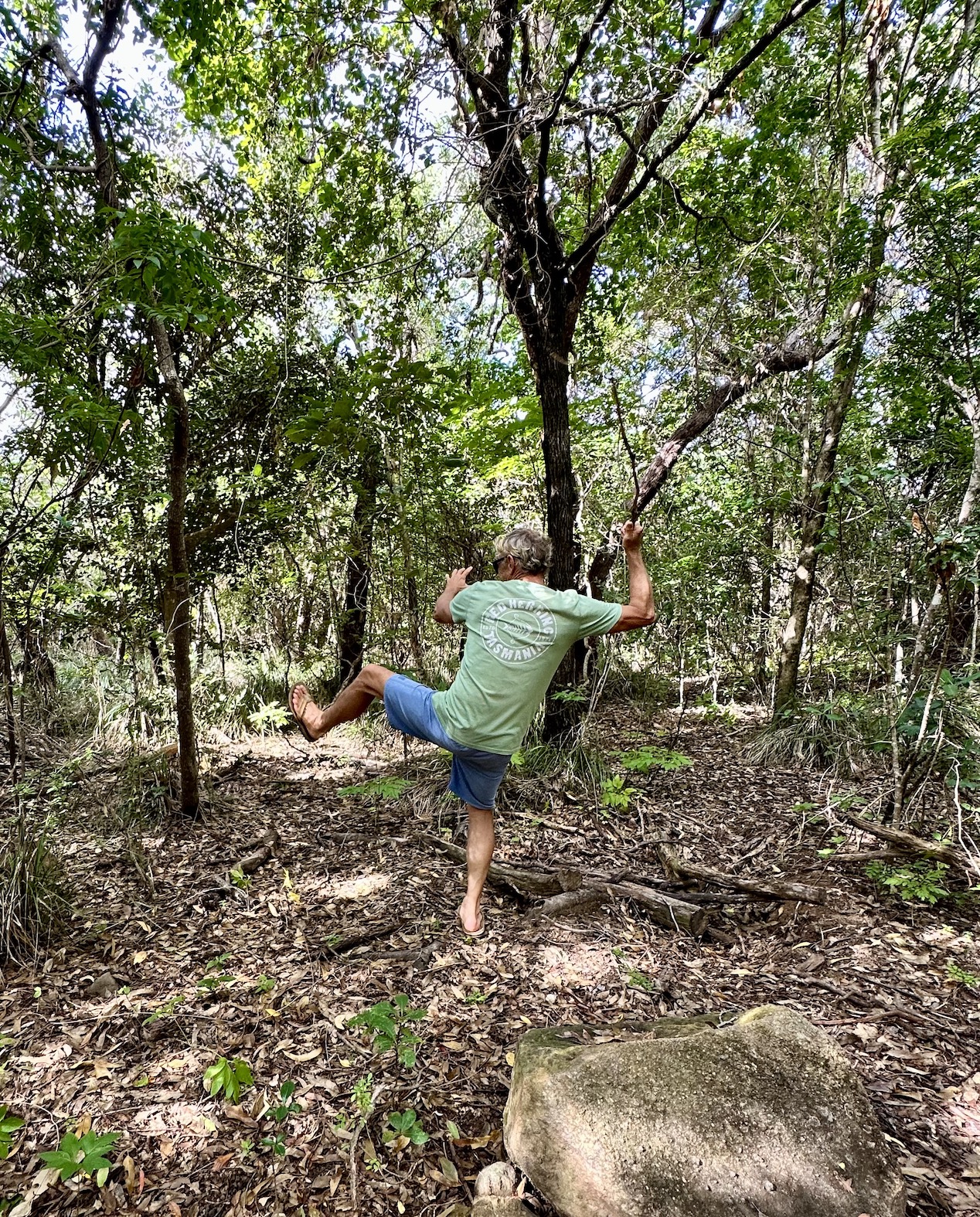 Totally immersed in the dappled jungle. We were searching for a waterfall, trying to follow a path that led us astray a couple of times.